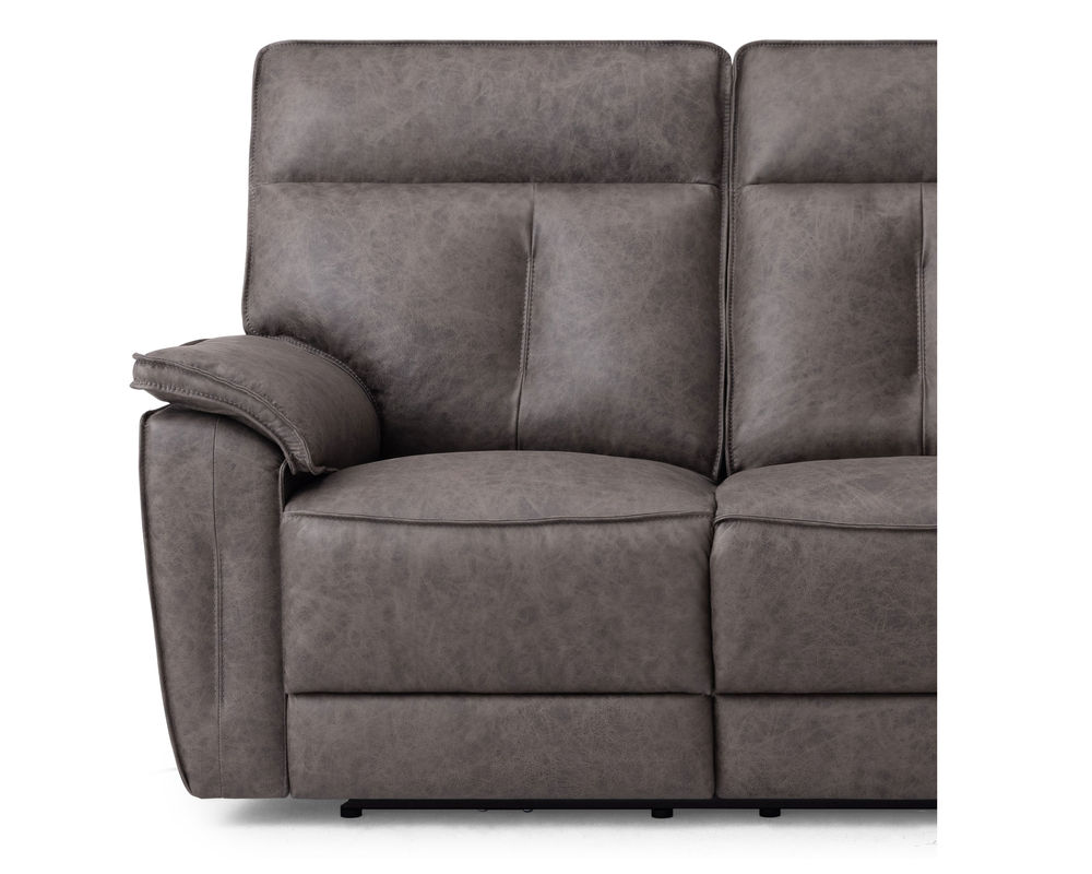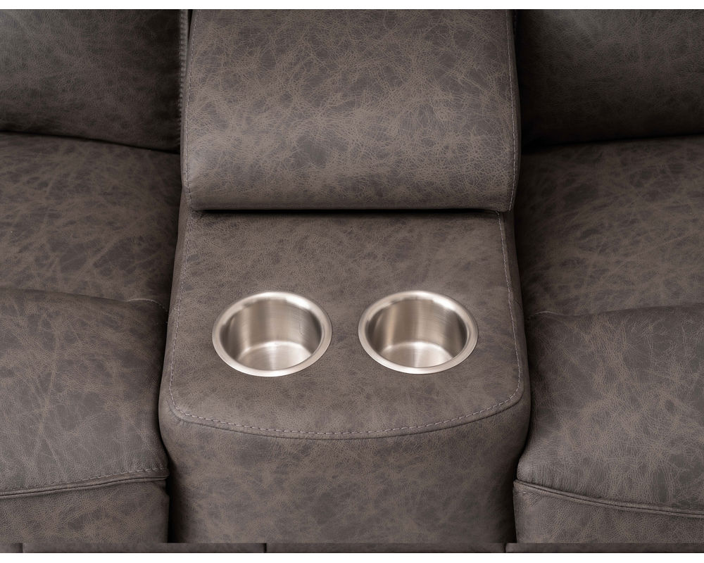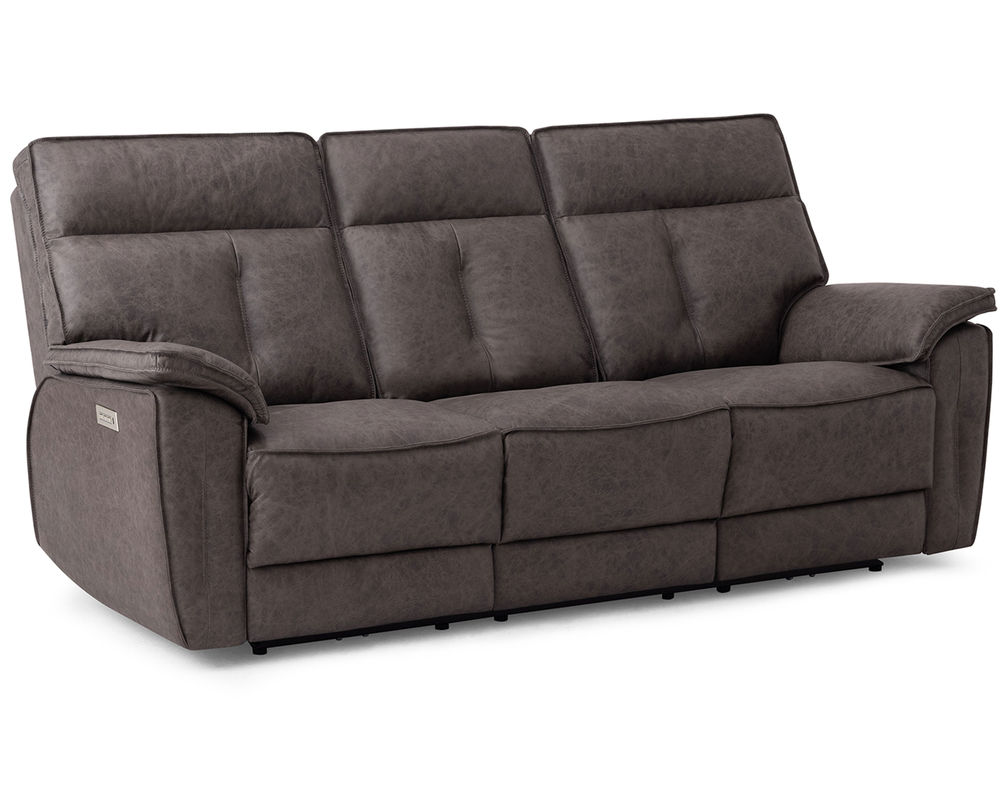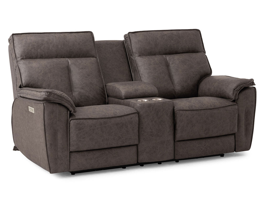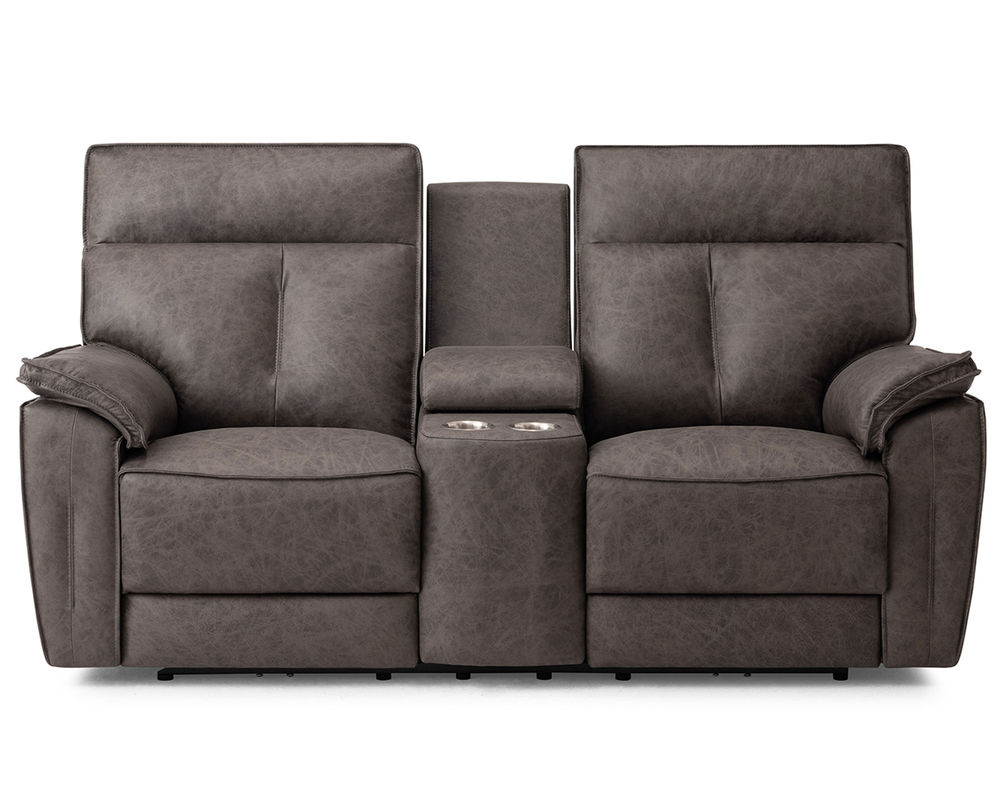 • Power recline and power headrests operated by a brushed metal power switch with integrated USB charging