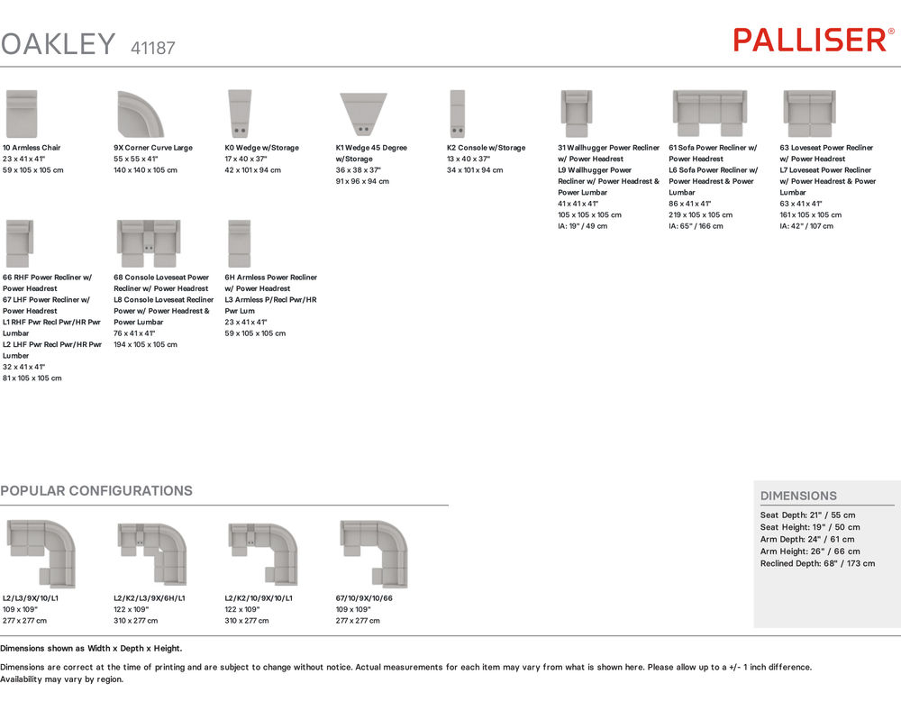 The Oakley is a beautiful piece of furniture that impresses with its advanced functionality. The double-bolstered back adds structure and is accented by topstitch details on the back and seat. But the power headrest and recliner capabilities truly set this sofa apart. With infinite opportunities for creating the perfect position, you can easily find your ideal level of comfort. And with wall-hugger technology, you can fully recline with just 2 inches of wall clearance, making it a space-saving option for smaller rooms.