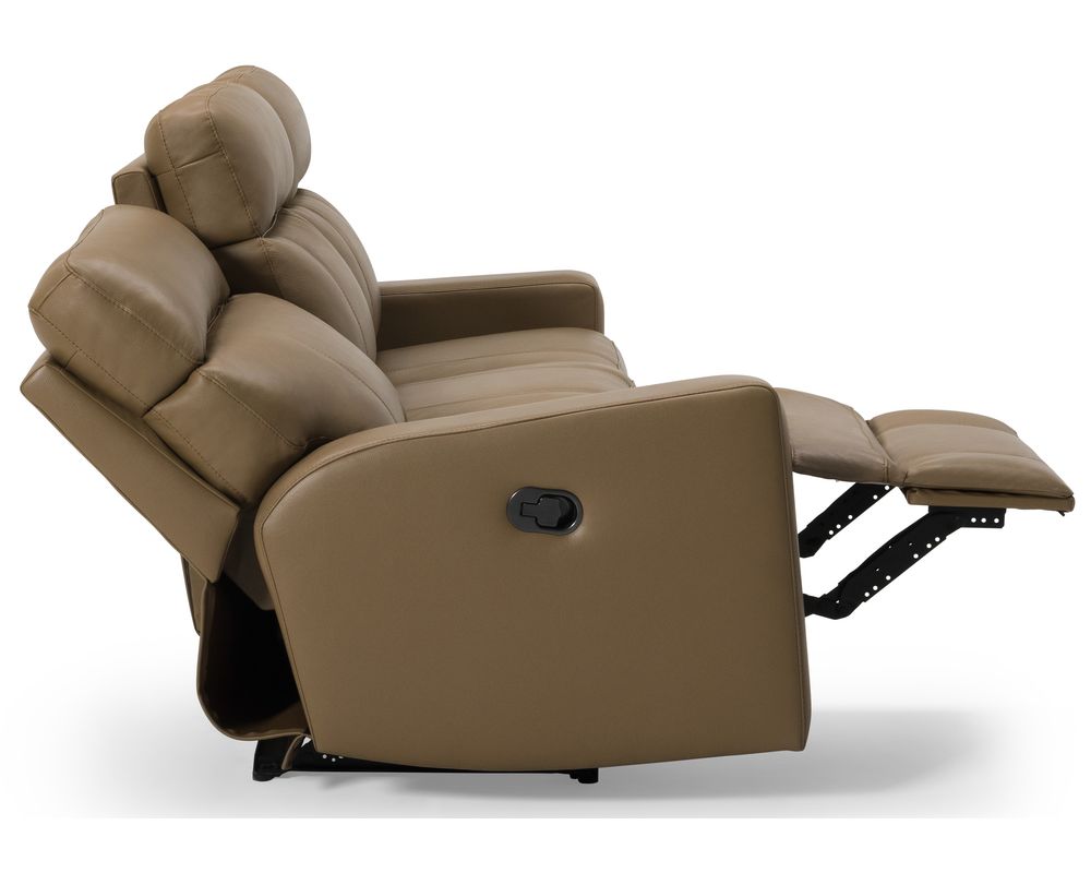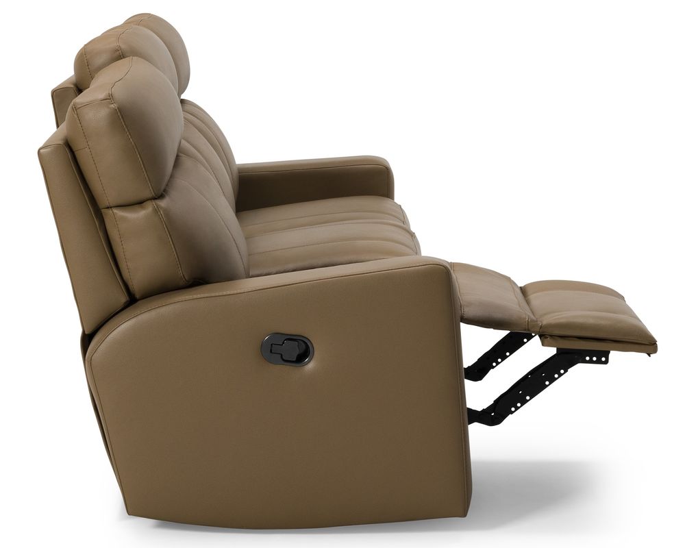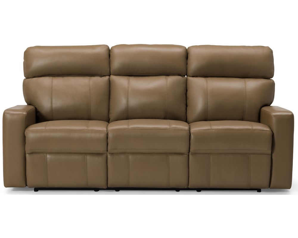 The Palliser Oakwood Reclining Sofa is designed for comfort and convenience. Its three-over-three cushion style allows three people to recline and relax on each portion of the couch. The track arms that frame these cushions house the toggle power recline mechanism, making reclining as easy as pressing a button.