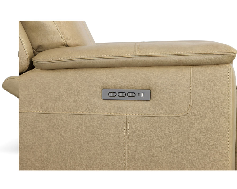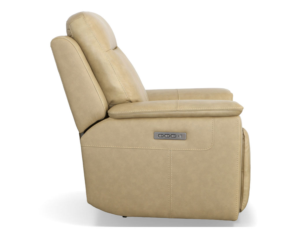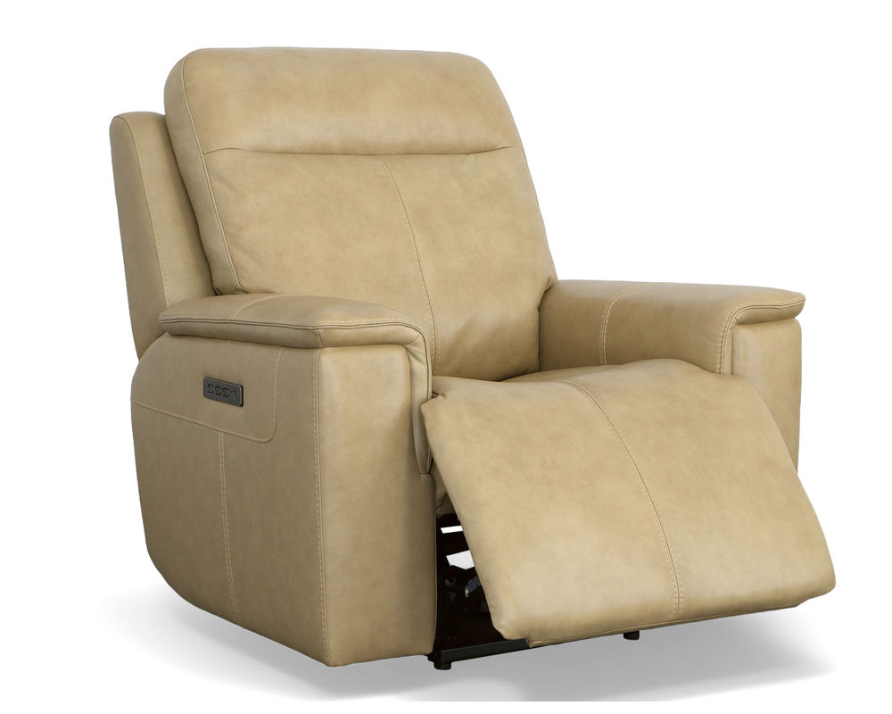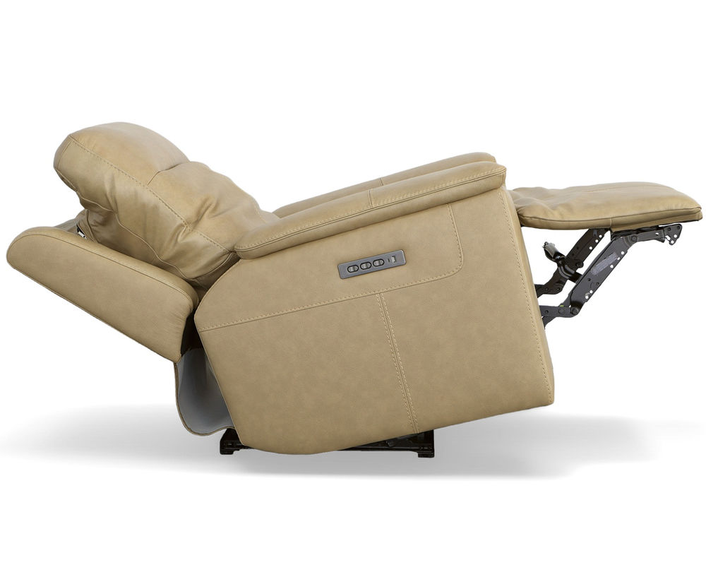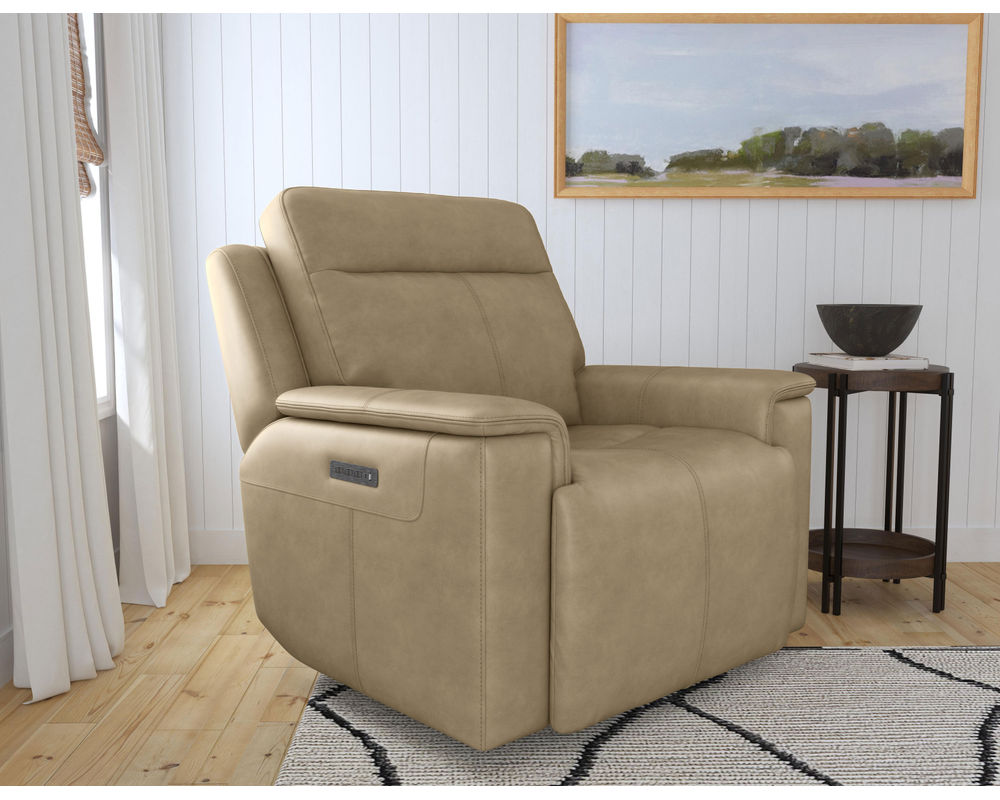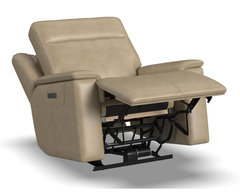 The Flexsteel Odell 1739 Power Recliner is a luxurious and comfortable recliner that combines ergonomic support and modern aesthetics. Its sleek lines, thin pad-over arms, and subtle pull tufting on the high divided back make it an attractive addition to any living space. With triple power functionality, you can easily adjust the headrest, lumbar support, and recline to find your ideal relaxation position. Zero Gravity technology provides a weightless feeling and reduces pressure on the body. And, the built-in USB ports make it easy to charge your mobile devices without ever leaving the chair. Finished in luxurious, long-lasting top grain leather, the Odell power recliner is available in two beautiful colors to add a touch of polish to any room.