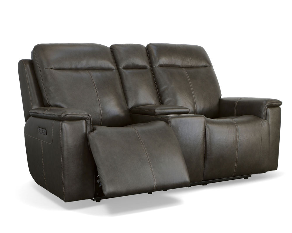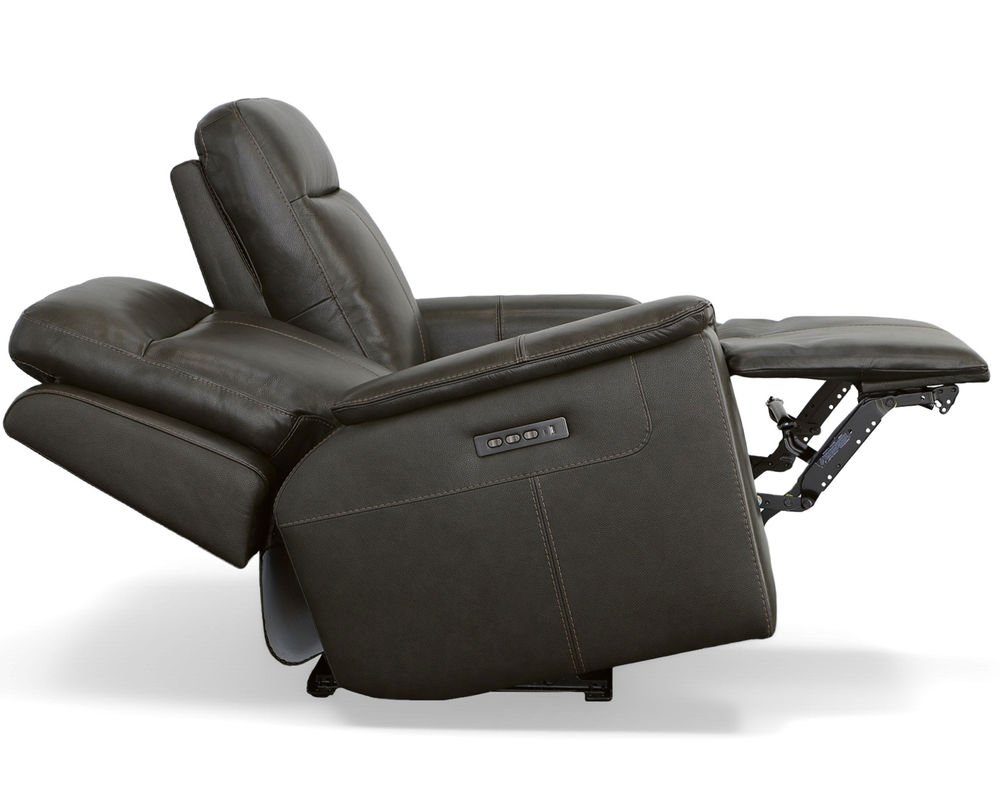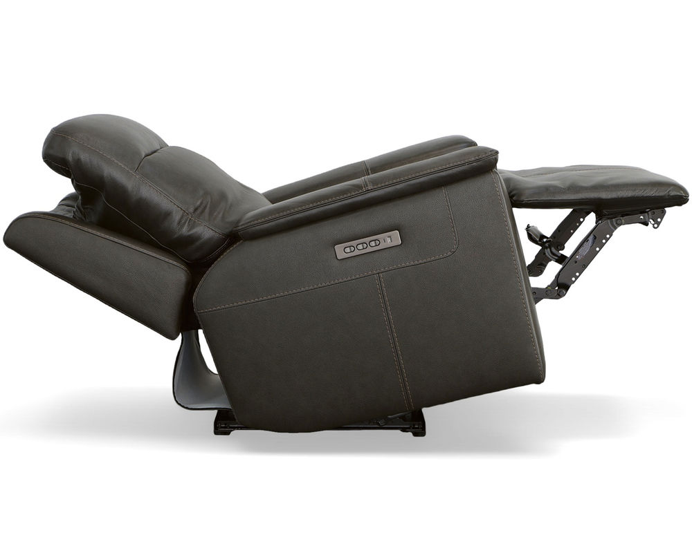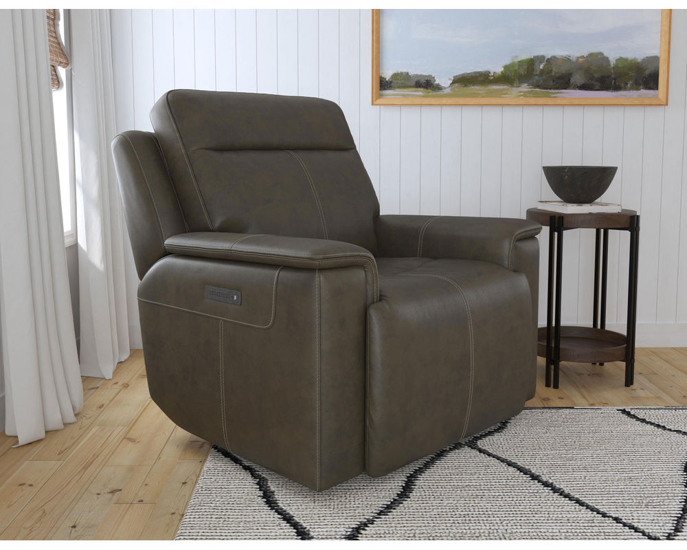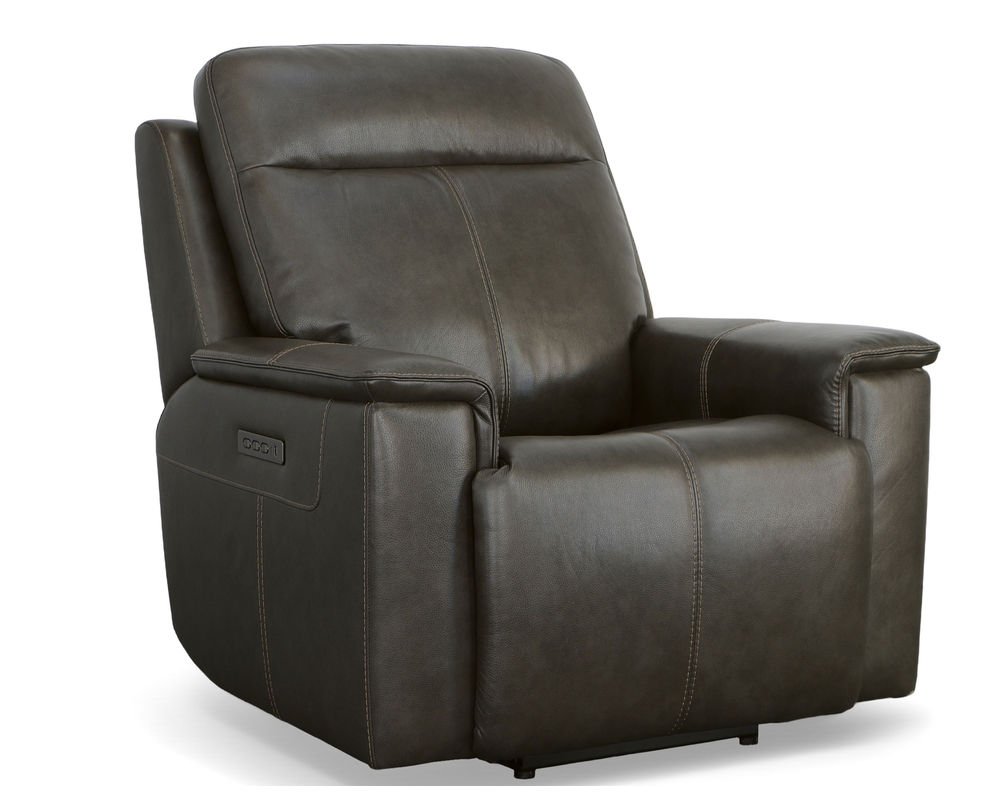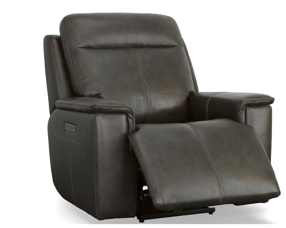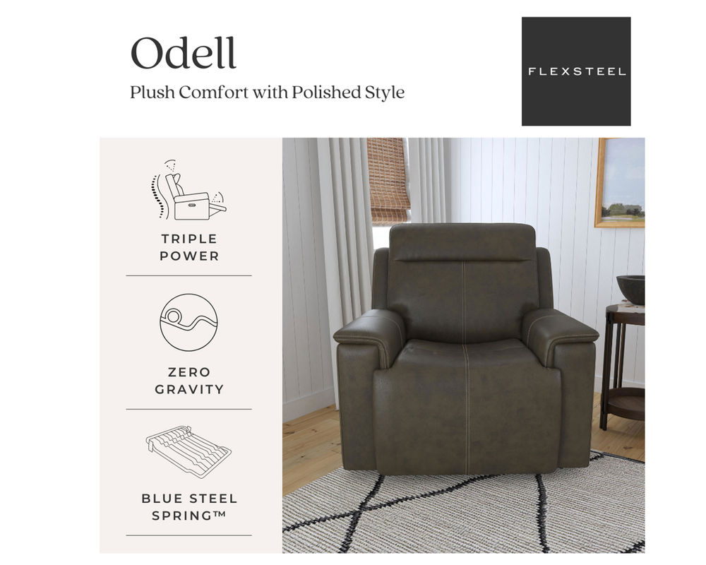 The Flexsteel Odell 1739 Power Recliner is a luxurious and comfortable recliner that combines ergonomic support and modern aesthetics. Its sleek lines, thin pad-over arms, and subtle pull tufting on the high divided back make it an attractive addition to any living space. With triple power functionality, you can easily adjust the headrest, lumbar support, and recline to find your ideal relaxation position. Zero Gravity technology provides a weightless feeling and reduces pressure on the body. And, the built-in USB ports make it easy to charge your mobile devices without ever leaving the chair. Finished in luxurious, long-lasting top grain leather, the Odell power recliner is available in two beautiful colors to add a touch of polish to any room.