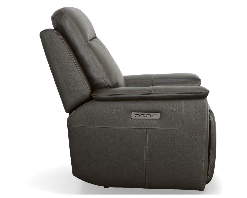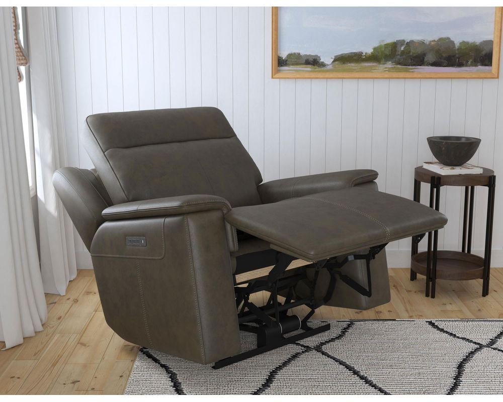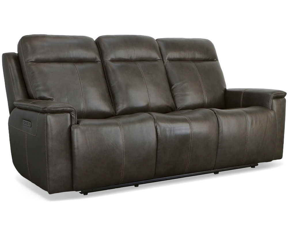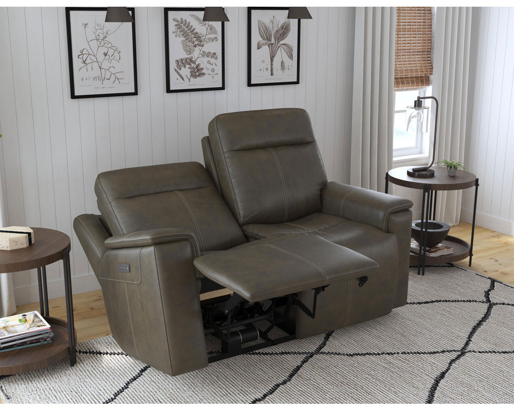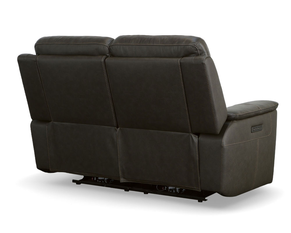 The Flexsteel Odell 1739 Power Reclining Console Loveseat is the perfect combination of ergonomic support and stylish design. Its modern silhouette is characterized by clean lines, thin pad-over arms, and subtle pull tufting on the high-divided backs, adding a touch of sophistication to any living space. With triple power functionality, you can independently adjust both headrests, and lumbar support, and recline to achieve the perfect level of relaxation. Plus, Zero Gravity technology creates a feeling of weightlessness, reducing pressure on the body. It also includes convenient built-in USB ports for easy device charging and a storage console for keeping beverages and remotes within easy reach. Available in two beautiful color options, the Odell Loveseat is upholstered in luxurious, long-lasting top-grain leather. With its ergonomic design and stylish look, the Flexsteel Odell 1739 Power Reclining Console Loveseat is the perfect choice for any home.