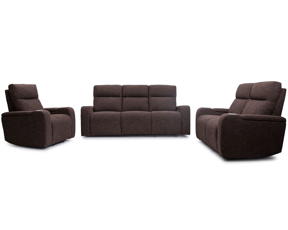 • Power Headrest with Power Recline • LED Lit Cupholders with USB Port and in arm storage • High-Quality Mechanism and Motor • 1.6 to 2.0 Density Foam • Individually pocketed coils seat cushion • Fully padded foam wrapped Hardwood Frame • Removeable backs • Chaise Pad Footrest on reclining seats