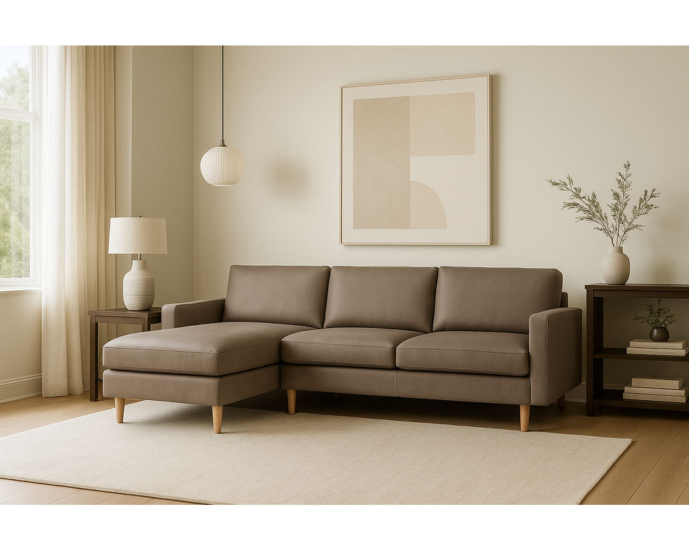 The Oscar Sectional, designed with your space and preferences in mind, comes in two pieces. This allows you to configure it in a variety of ways, from a traditional L-shaped layout to a more unique diagonal arrangement. Its adaptability ensures that it will fit perfectly in your space, no matter the layout.