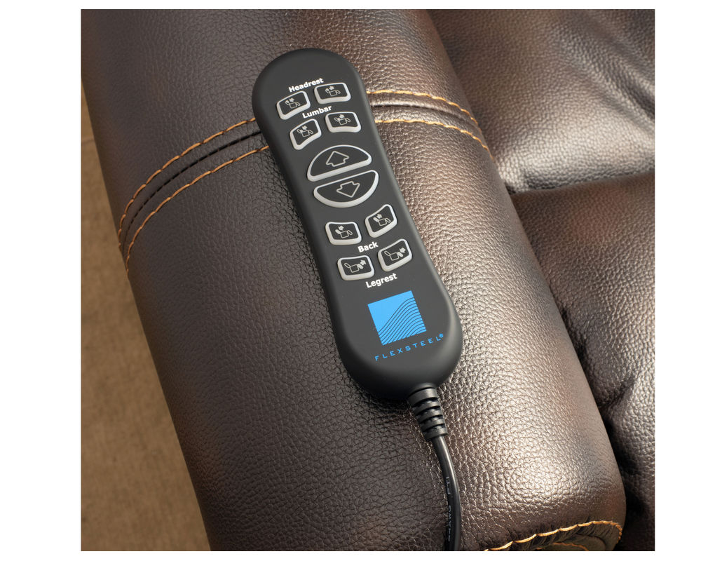 • Ten-button wired hand control on the right-hand side of the recliner allows for controlled transitioning between the recline and lift positions.