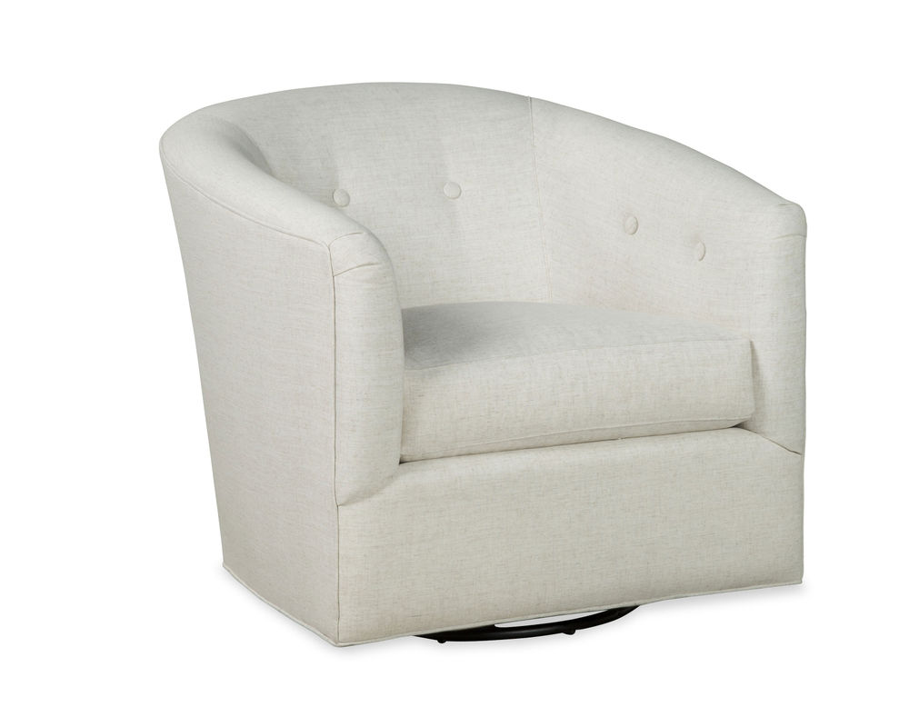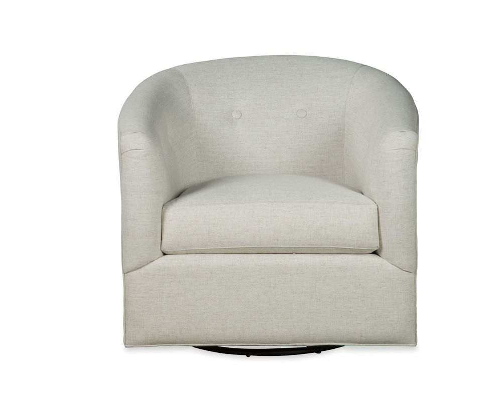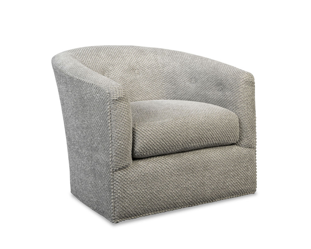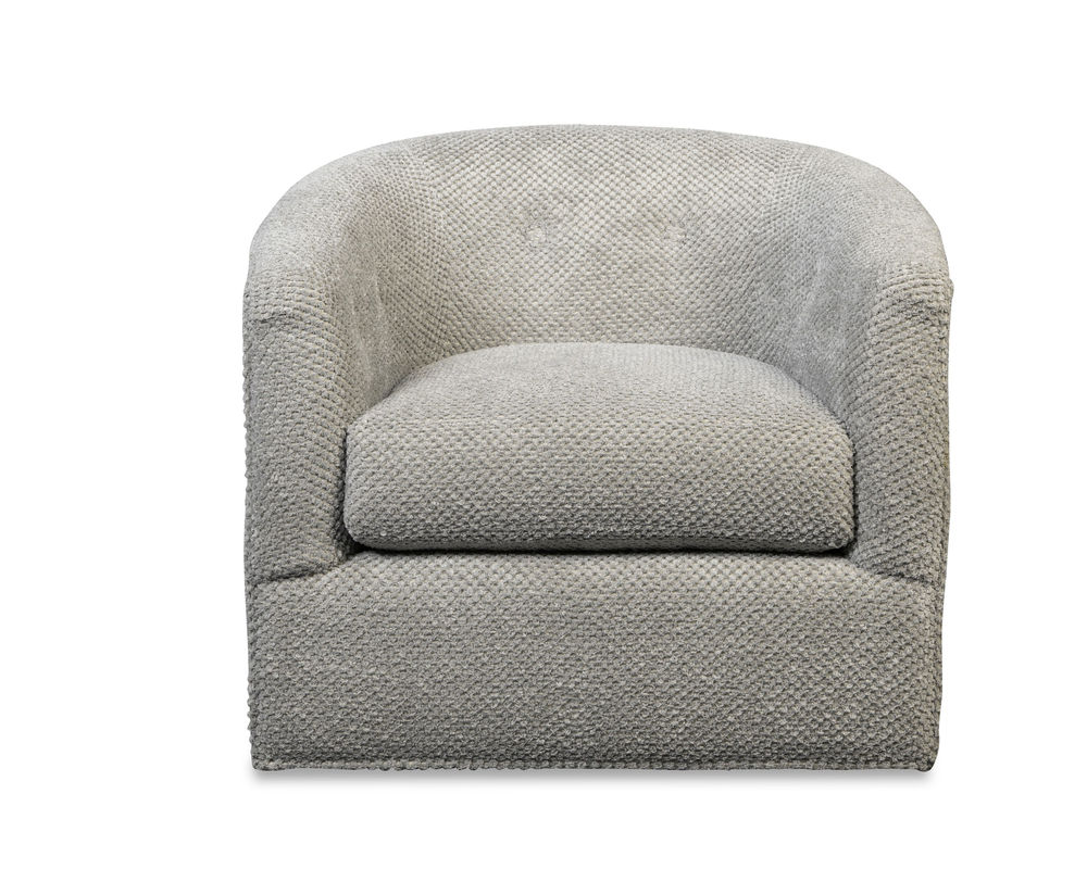 This Oscar 094110 Swivel Chair is the perfect addition to any modern living space. Its sleek, comfortable design is sure to impress, featuring a rounded barrel silhouette, button accents, and our Blend Down cloud cushion. The cloud cushion is designed to provide superior comfort and relaxation, making it the perfect chair for unwinding after a long day. Plus, it's available in over 100 high performance fabrics, so you can choose the perfect look to match your home decor. The swivel design adds an extra element of convenience, allowing you to easily move the chair to the desired spot with ease. Whether you're looking to add a touch of modern style to your home or just want a comfortable place to relax, this swivel glider is a great choice.