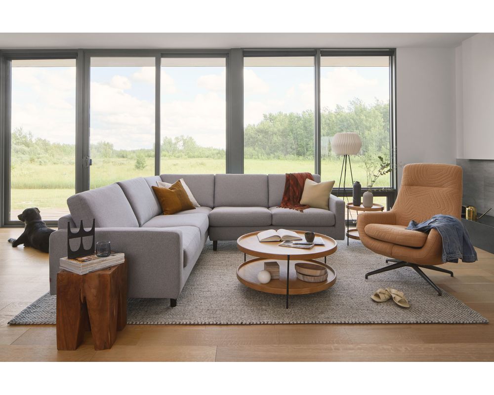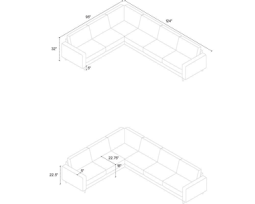 Measuring 95" x 124", this sectional is reversible, making it versatile and adaptable to different room layouts. The focus on a simple and classic design is evident in the layered, varied-density foam used in the loose seat and back cushions, ensuring maximum comfort for you and your guests. This versatility ensures that the Oscar Sectional can adapt to your unique living space.