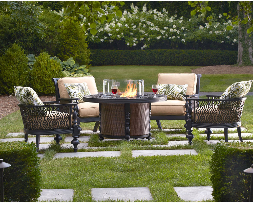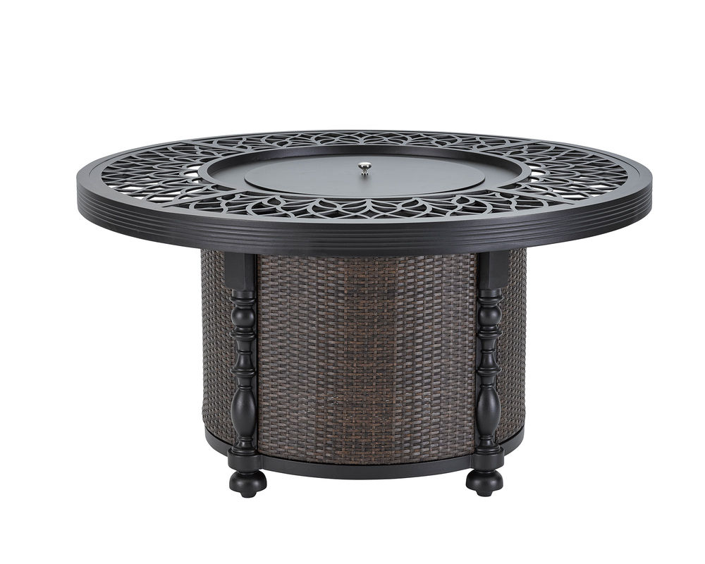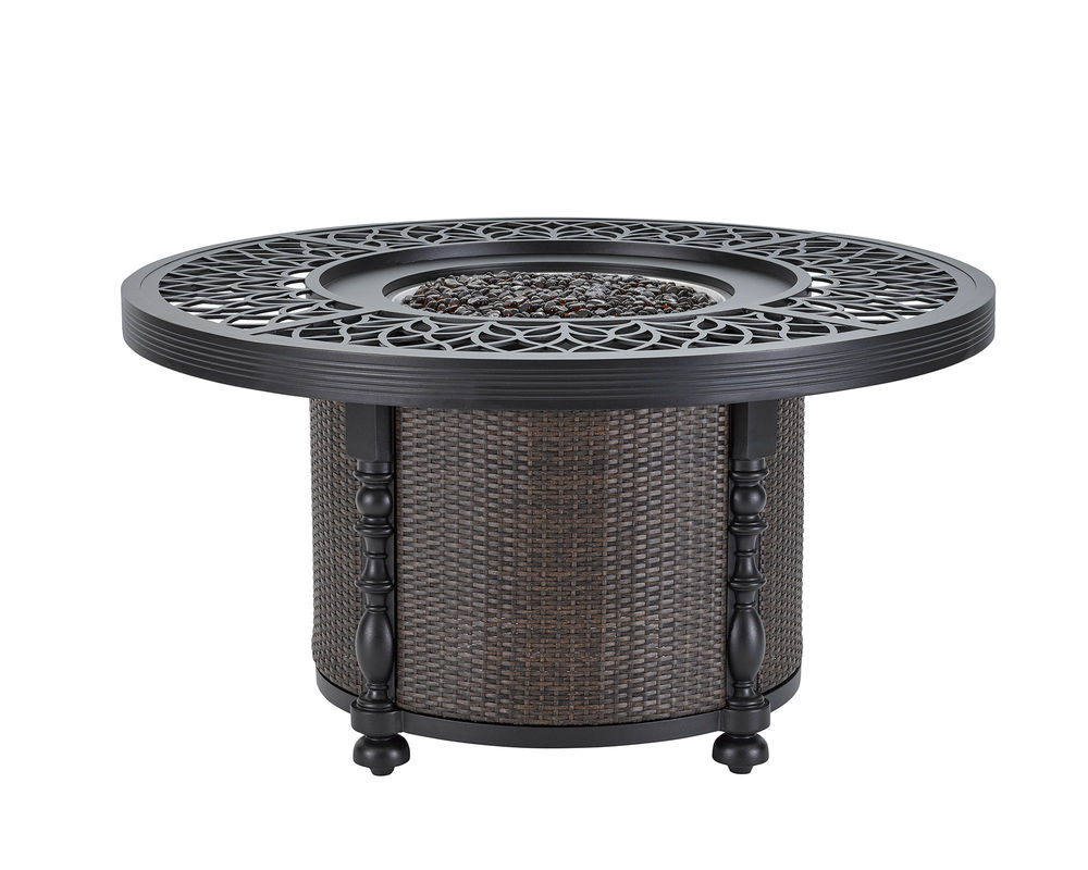 • The frame is constructed of rust and mildew resistant premium cast aluminum with a powder-coated finish. • Features a slide out drawer for propane gas storage. Propane gas fueled. Will produce 60,000 BTU. • This unit is not available with gas conversion option. • Includes heat-resistant decorative glass rocks in choice of Crystal, Amber or Mixed Chrystal/Amber. • The finish is Textured Walnut. Only available in finish as shown.
