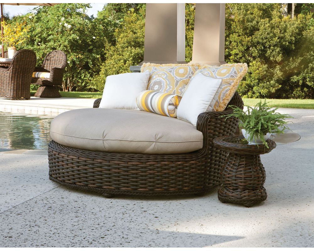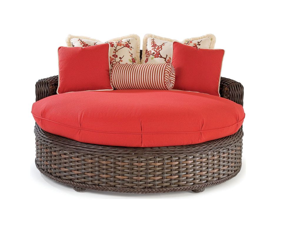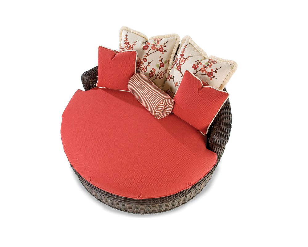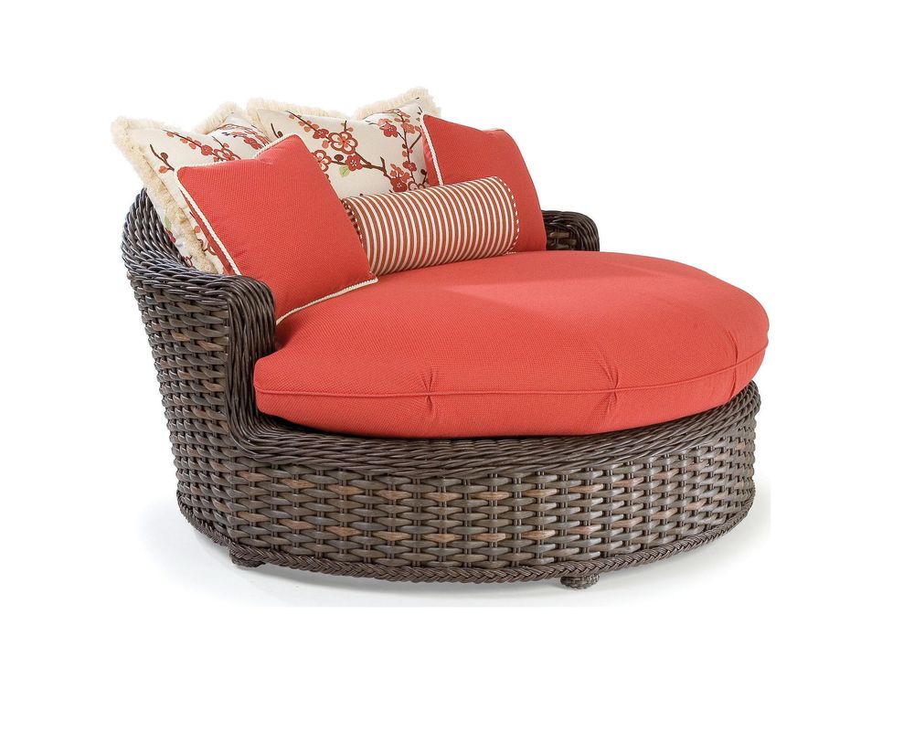 The cushions that come with the South Hampton Circular Chaise are made out of durable WeatherMaster material. This material features layers of cushioning that allows the water to drip through them on the way to the mesh lining at the bottom of the cushion. This mesh also promotes airflow into the cushion to further facilitate drying times.