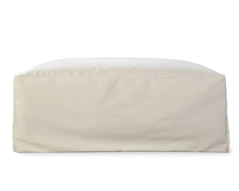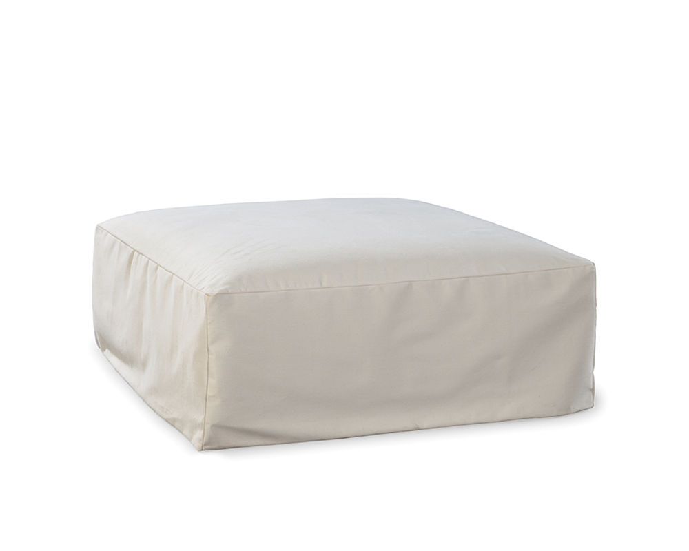 Choose to upholster the Elena Slipcover Collection 48" Square Cocktail Ottoman in any upholstery by choosing from one of the hundreds of different fabric colors and patterns that are available. These cushions feature WeatherMaster technology that allows for swifter drying times when pool or rainwater gets in. There are layers in the cushions that push the water down through towards the mesh that sits on the bottom. The mesh lets the water out while also pushing air up into the cushions to aerate it and promote faster drying.