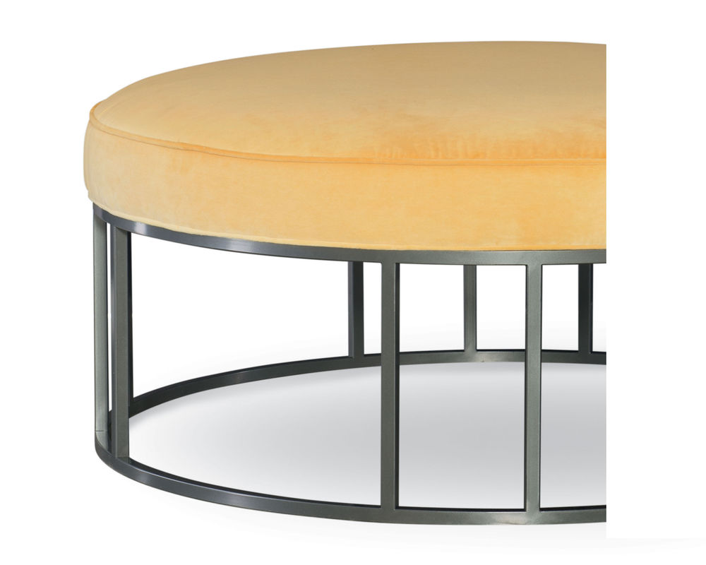 OUTSIDE: 44W x 44D x 20.5H DESCRIPTION: Metal Base Round Ottoman