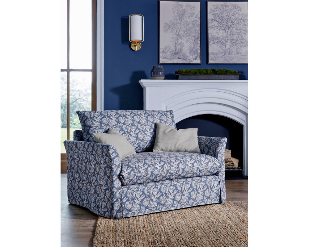 ✅ Slipcover-inspired silhouette with slim rolled arms and a full tailored skirt