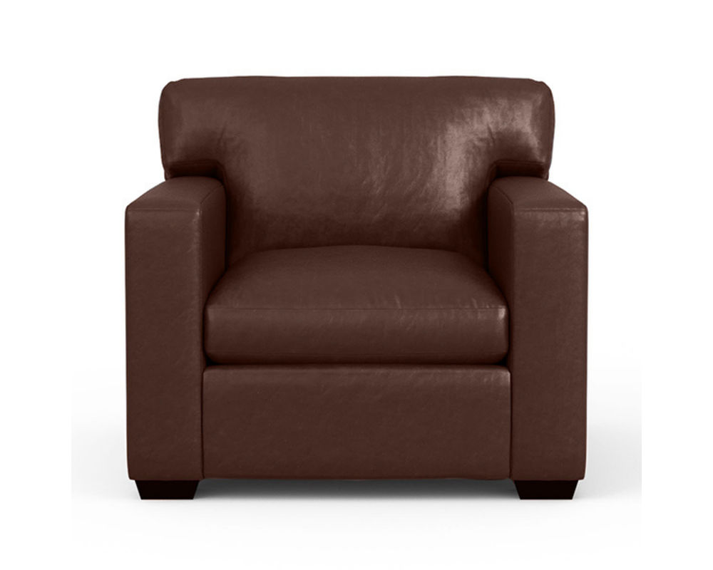 Upholstered in 100% top grain Lux Cognac leather, this chair features a semi-aniline finish with a warm two-tone patina that gets better with age. Lightly corrected for durability but still soft and supple to the touch, the leather is soap-and-water cleanable, stain resistant, and sustainably sourced from Brazil.