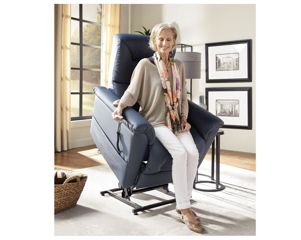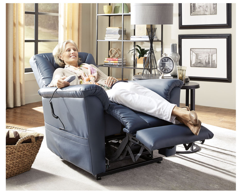 The power lift mechanism gently guides you to a comfortable standing position, alleviating any pressure on the joints and muscles. For added convenience, there is an outside pocket to keep the remote and your belongings within arms reach. An extended footrest offers additional support when lounging or watching television in a fully reclined position.
