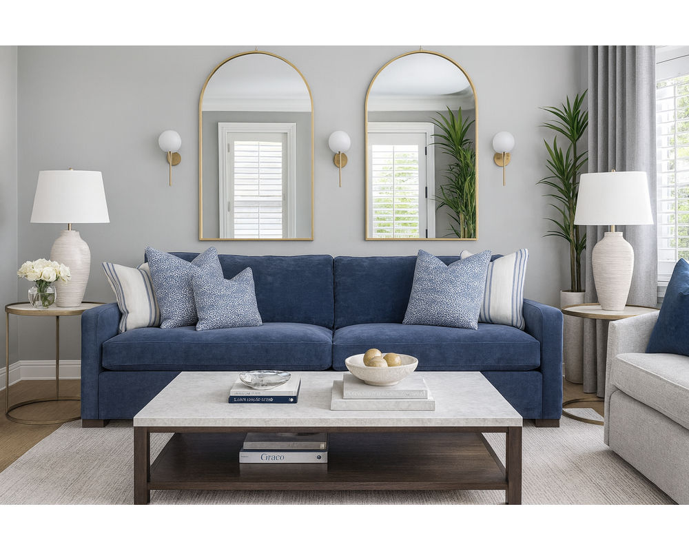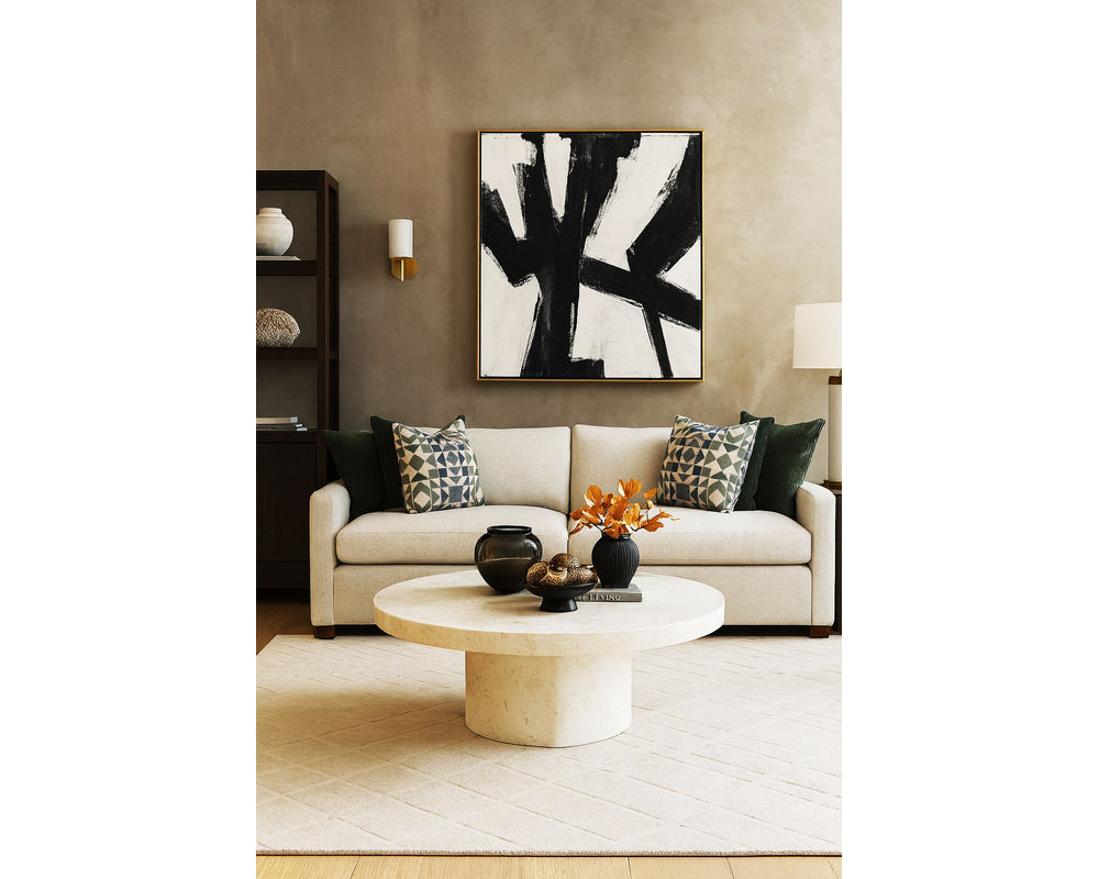 The Pandora Sofa is designed for both style and comfort with its inviting silhouette, generous 91" width, and plush cushions. Four Blendown throw pillows add layers of softness, while premium Springdown seat construction ensures lasting support and comfort. With a hardwood frame, sinuous wire seating, and the choice of 69 performance fabrics and 28 wood finishes, the Pandora Sofa delivers handcrafted quality and timeless American-made design.