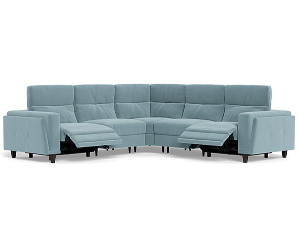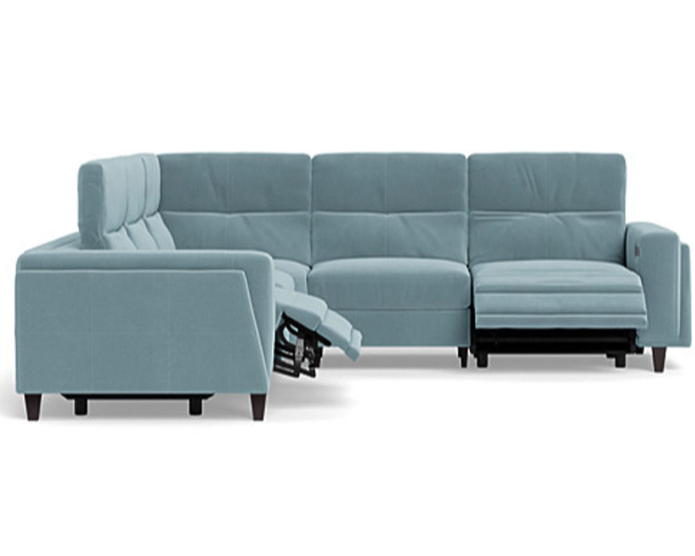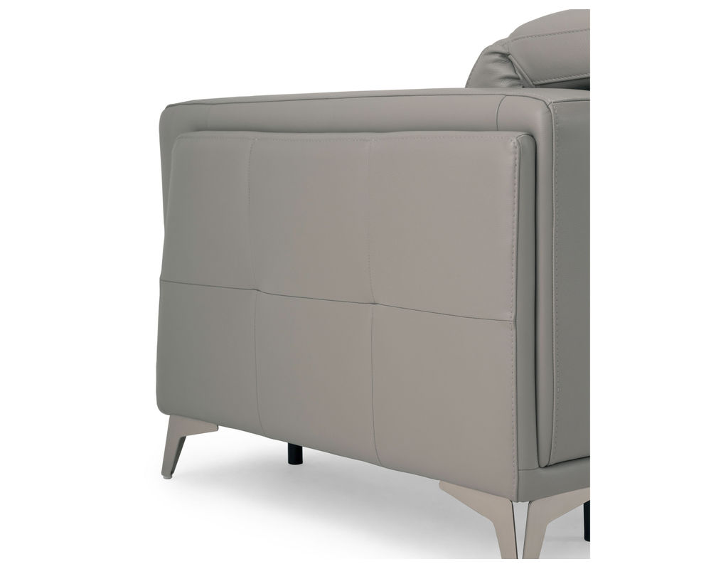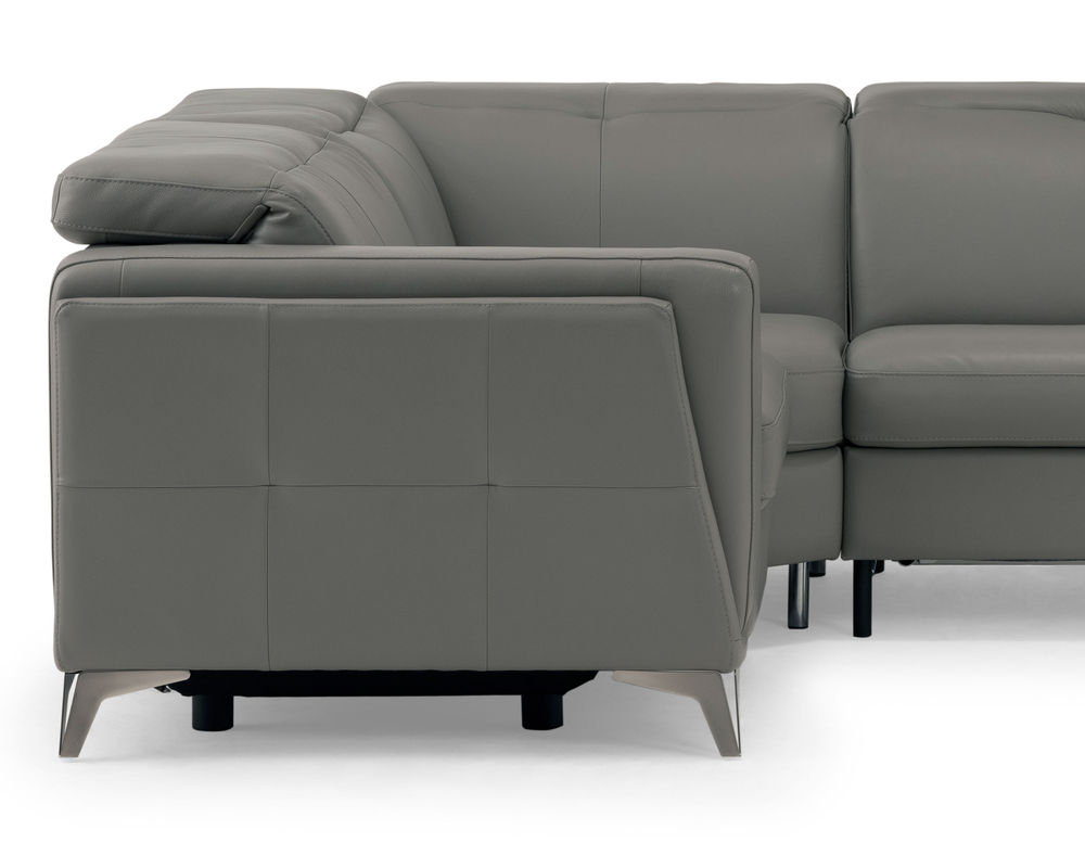 • Power recline with a button switch featuring integrated USB charging, finished in an attractive brushed metal