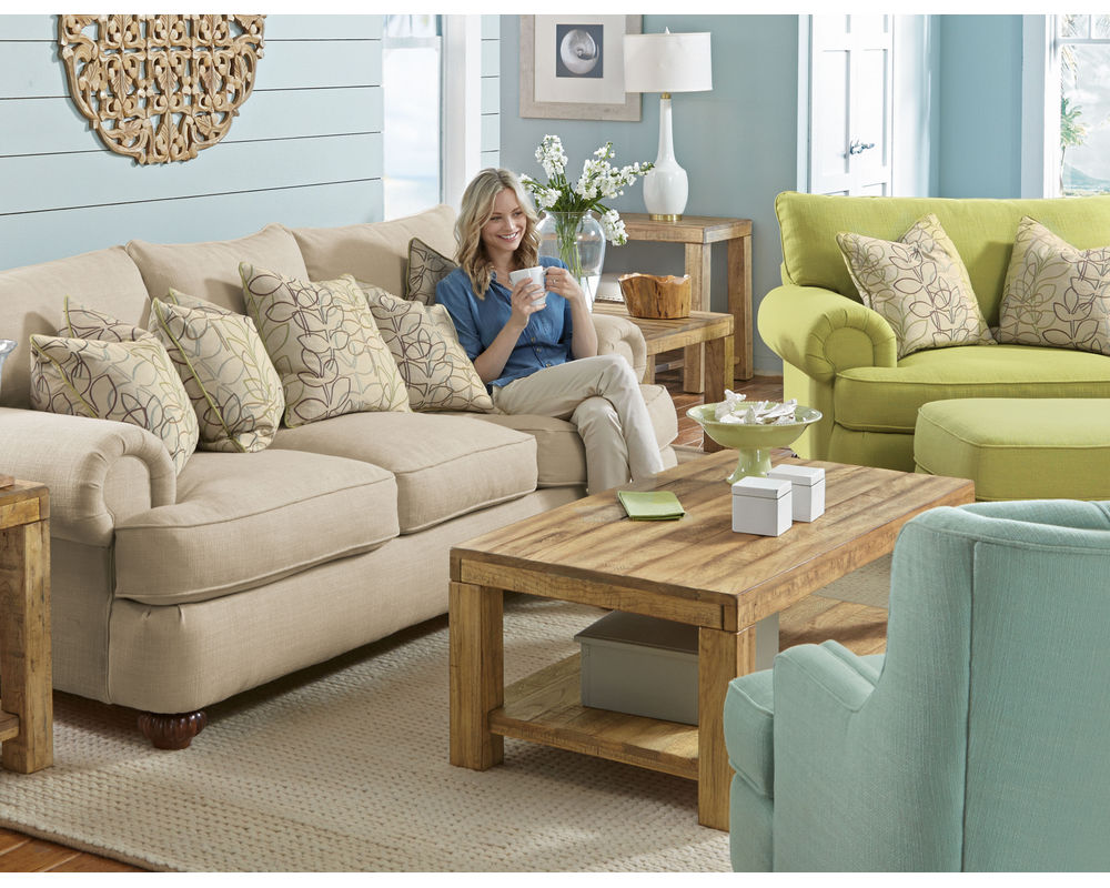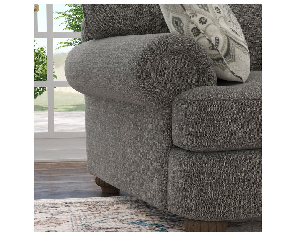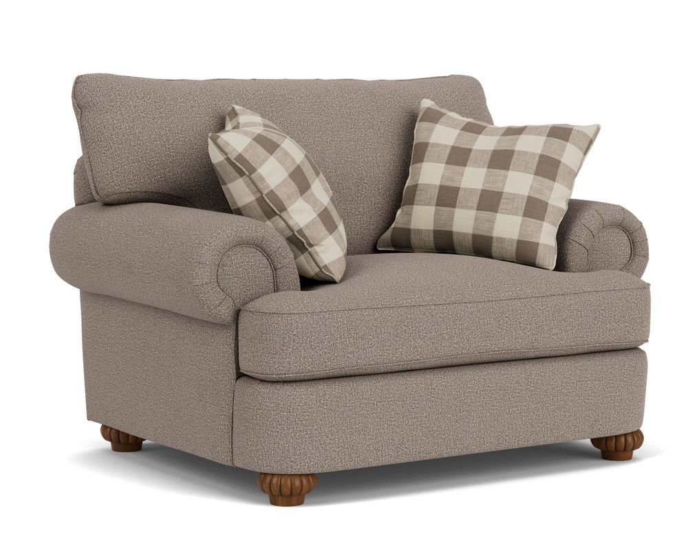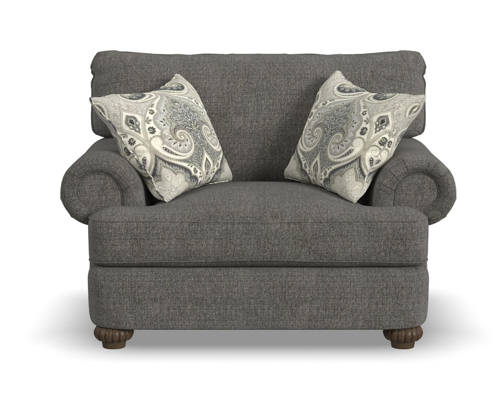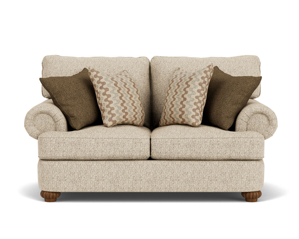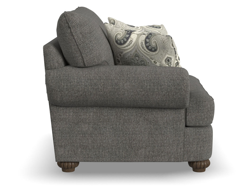 The Flexsteel Patterson 7321 Sofa provides a generous and elegant design that is sure to make a statement in any room. An inviting appearance is created with its prominently rolled arms and padded front rail. The overstuffed seat and back cushions on a large frame make it the perfect spot to curl up and relax. Fluted bun feet and optional nailhead trim add the finishing touches to the Patterson, making it the perfect choice for any home. For an added touch, the Patterson is also available with a nailhead trim for a slight upcharge. Enjoy stylish comfort with the Flexsteel Patterson 7321 Sofa.