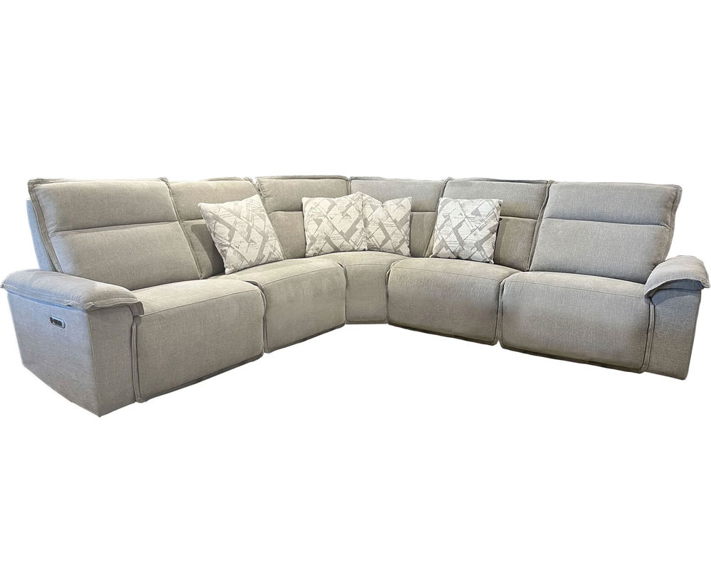 Introducing the stylish and functional Perimeter 5 PC Power Reclining Sectional, the perfect addition to your living space. This modular sectional combines fashion and functionality to create a versatile piece that can fit into any room. Its contemporary design is complemented by tailored flange detailing, giving it a polished and finished look.