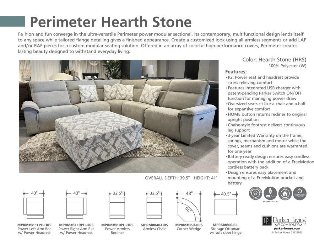 But it's not just about looks – the Perimeter sectional is designed to withstand everyday use and provide lasting beauty. It is built with high-quality materials and expert craftsmanship, ensuring durability and longevity. The power reclining feature adds another level of convenience and comfort, making it the ultimate relaxation spot in your home.