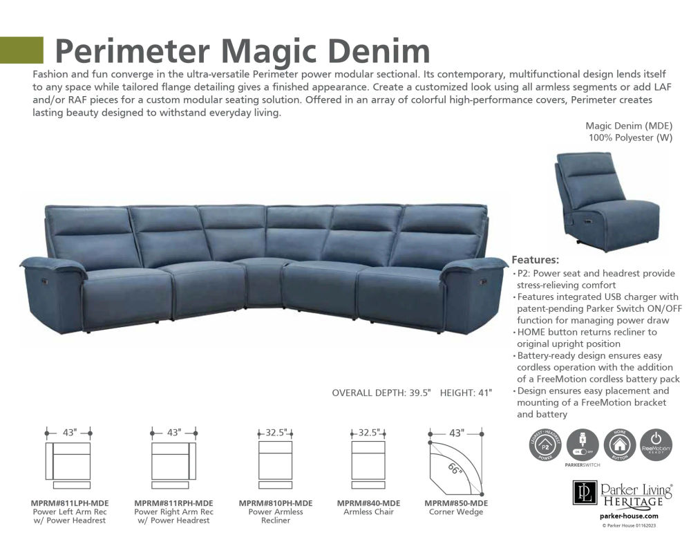Introducing the stylish and functional Perimeter 5 PC Power Reclining Sectional, the perfect addition to your living space. This modular sectional combines fashion and functionality to create a versatile piece that can fit into any room. Its contemporary design is complemented by tailored flange detailing, giving it a polished and finished look.