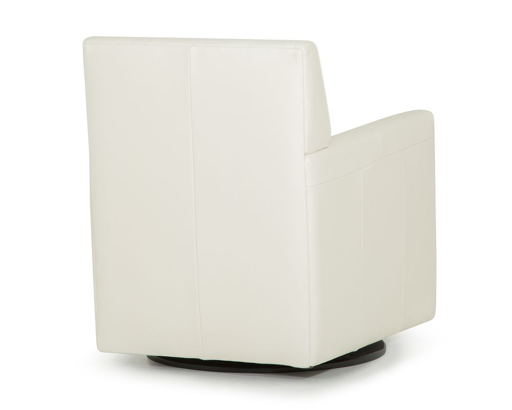 We purchased these chairs in vegan leather and really like them. The swivel is smooth and they are very comfortable. Nice and wide for men too.