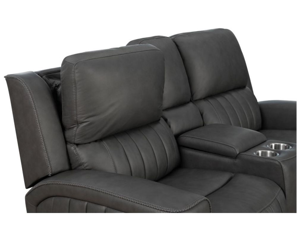 The Pierce Reclining Sofa boasts a sleek and sporty design, adding a touch of sophistication to any living space. The winged split pub channeled back is not only visually appealing but also provides excellent back support. The power headrest and lumbar features allow you to adjust the sofa to your desired position, providing ultimate comfort and relaxation. The sofa also has a convenient drop-down table with 2 cup holders, so you can keep your drinks and snacks within reach while unwinding, all in a design that exudes elegance and style.