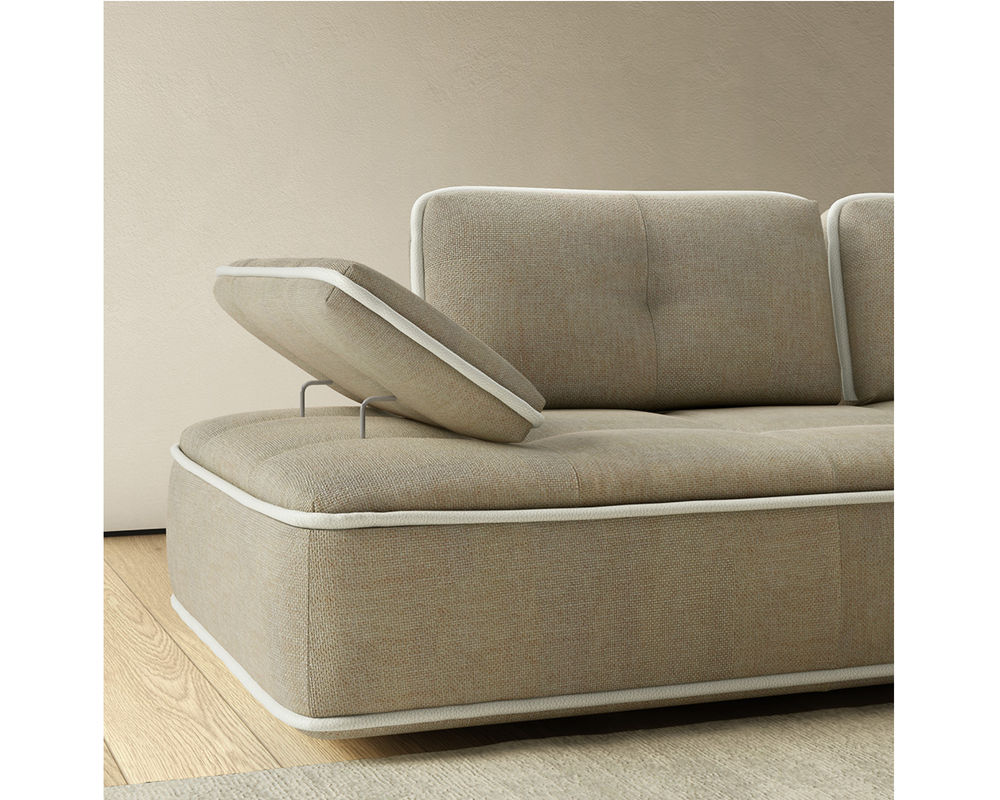 One of the standout features of the Pixel C294 Sectional is its exclusive sliding system, which allows the backrest to easily adjust to your desired seat depth. This means you can create a more comfortable seating experience based on your current needs. The armrests, equipped with a ratchet mechanism, provide extra support for your head when you want to lie down and relax, ensuring a comfortable and enjoyable experience.