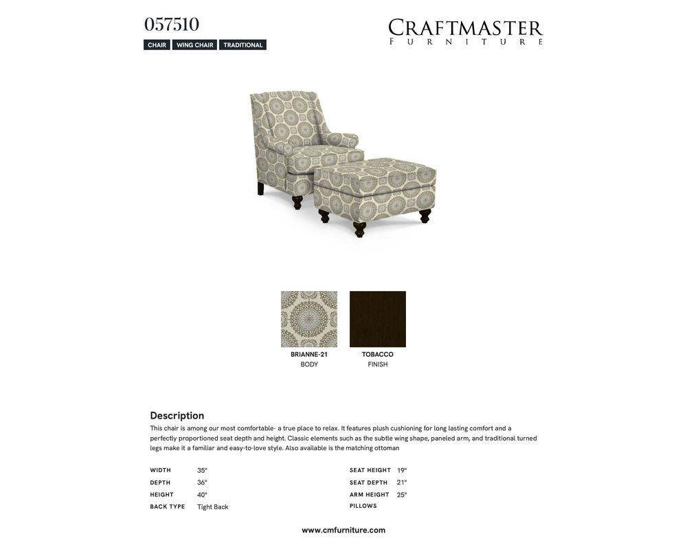 NOTE: Due to dye lot variations from fabric suppliers, Craftmaster Furniture cannot guarantee dye lot matches unless products are purchased simultaneously.