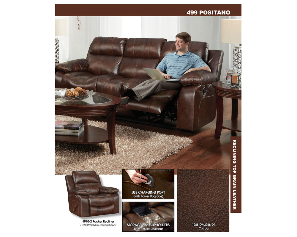 The Positano Group Features Top Grain Italian Leather/Match, Decorative Contrast Stitching, Contemporary Pub Headrest Design with European Inspired Scoop Seat, and Comfort Coil Seating with Comfor-Gel.