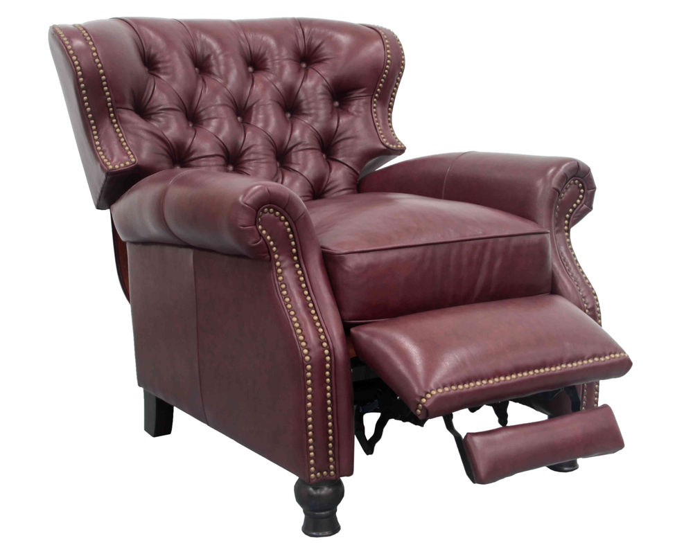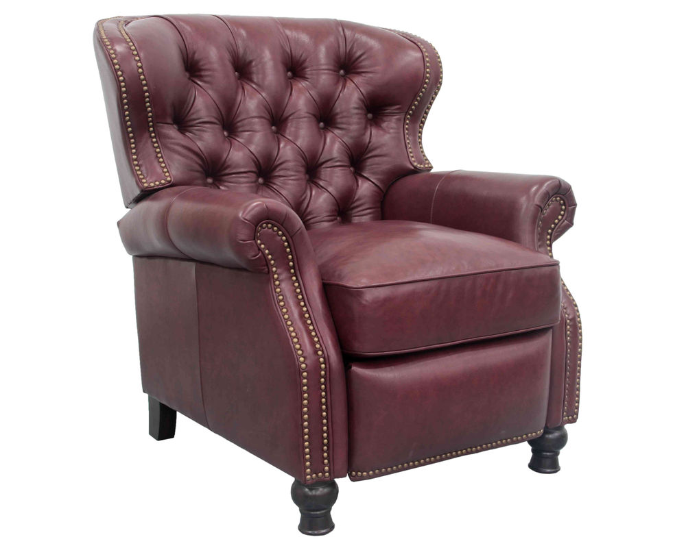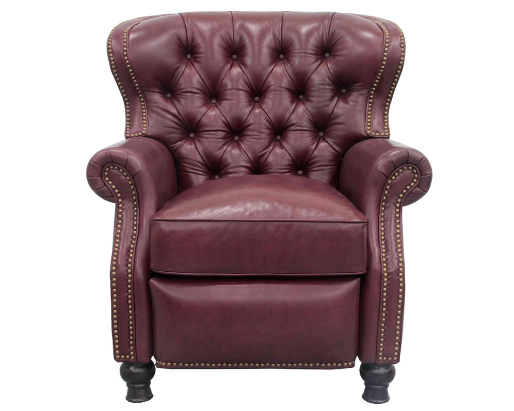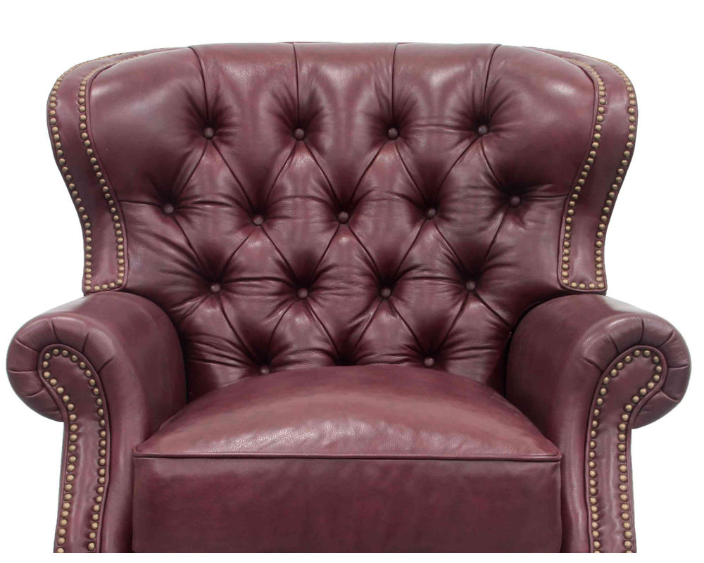Introducing the Presidential Leather Recliner - the epitome of traditional classic elegance and timeless styling. This exquisite piece of furniture, with its deep button tufting, barrel back, and accenting nail head trim, exudes luxury and is designed to provide comfort and beauty to your home. The Presidential will become the focal point of any room, adding a touch of opulence to your living space.