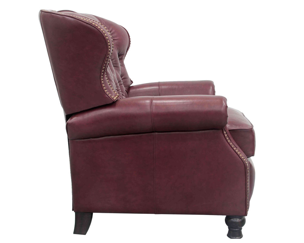 In addition to its classic design and premium leather material, this recliner features deep button tufting. This not only adds a touch of elegance but also helps to distribute weight evenly, ensuring maximum comfort. The barrel back design provides ample support for your back, while the accenting nail head trim adds a touch of sophistication.