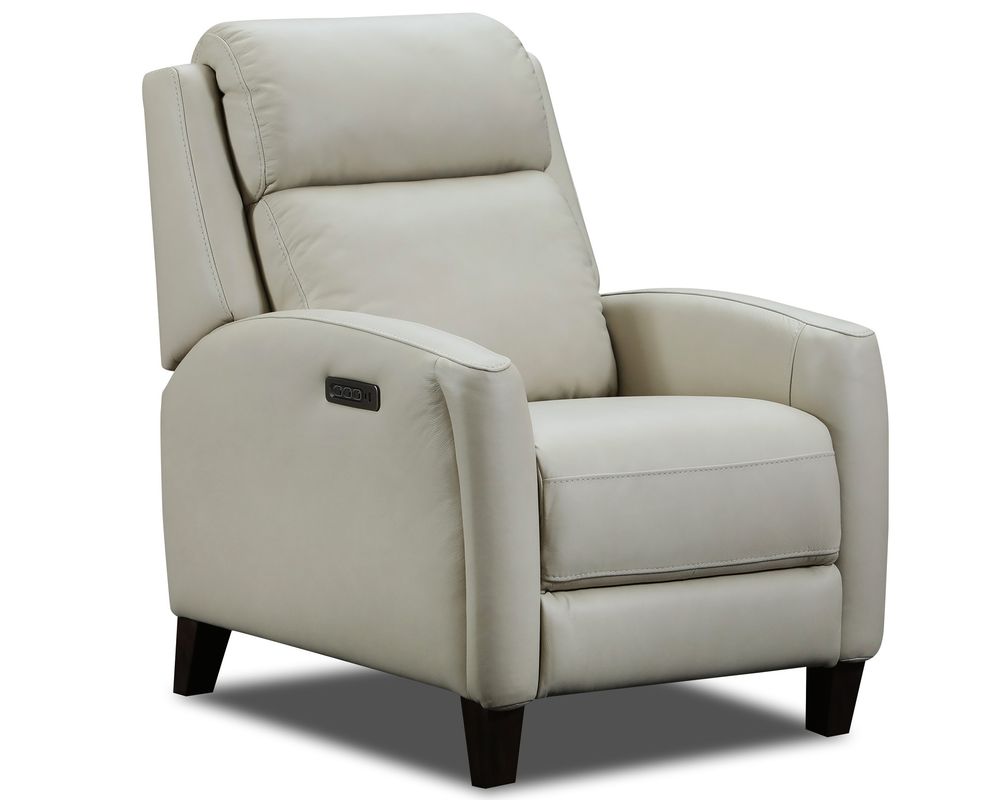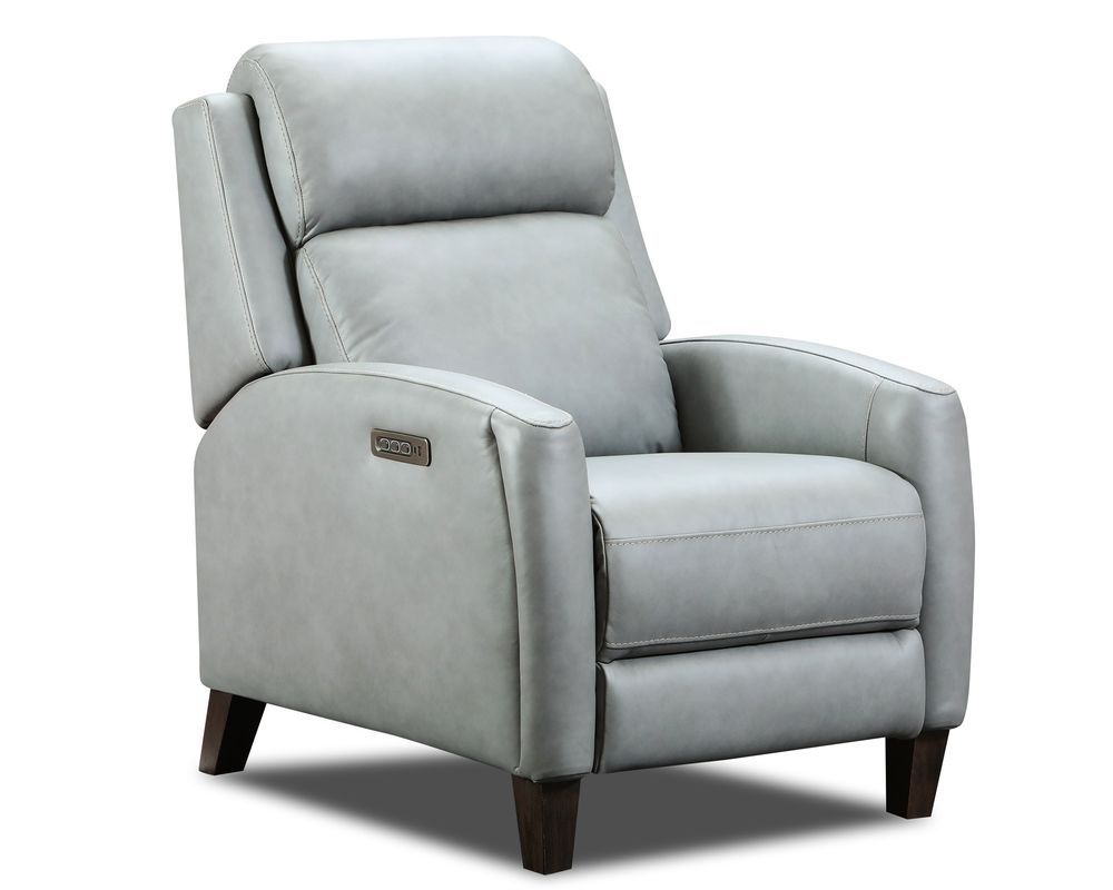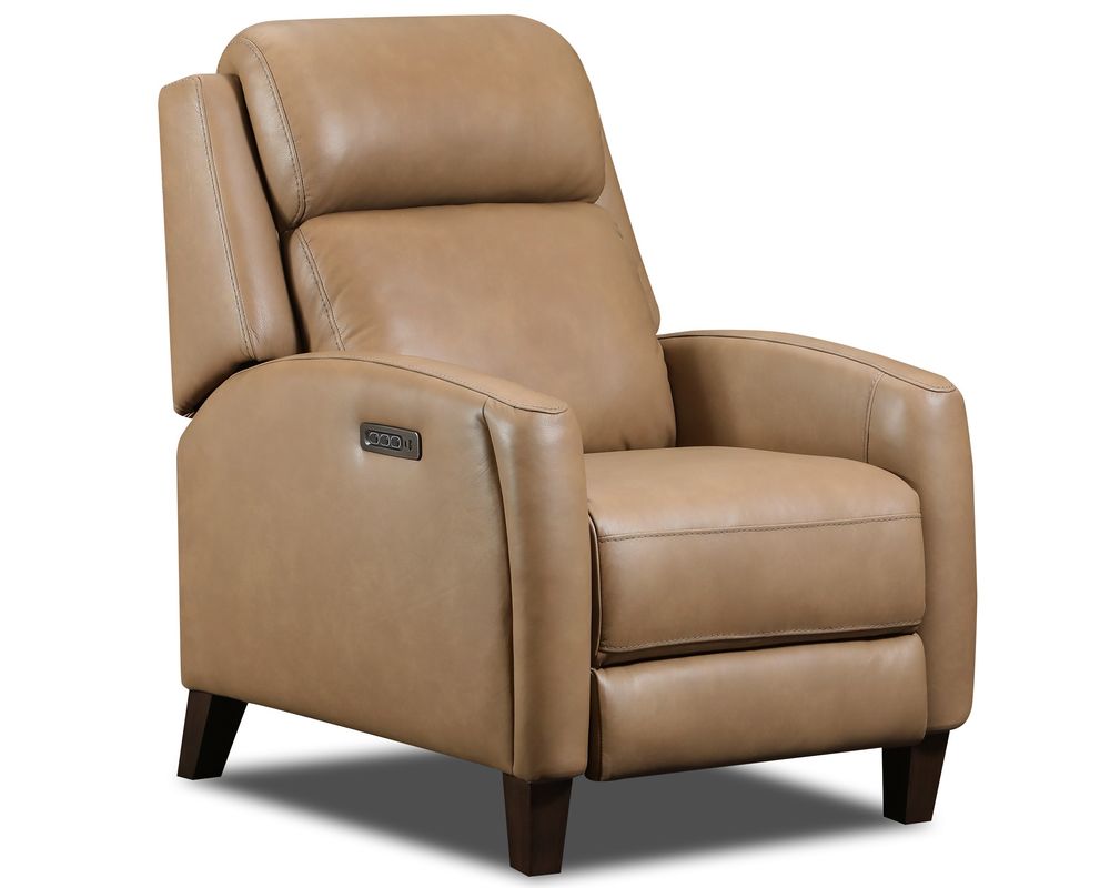 Introducing the Presley 9605P Hi-Leg Recliner, the perfect addition to any modern or transitional living space. This recliner boasts a unique design, with its upholstered arms seamlessly flowing into tapered block legs, creating a cohesive and stylish silhouette.