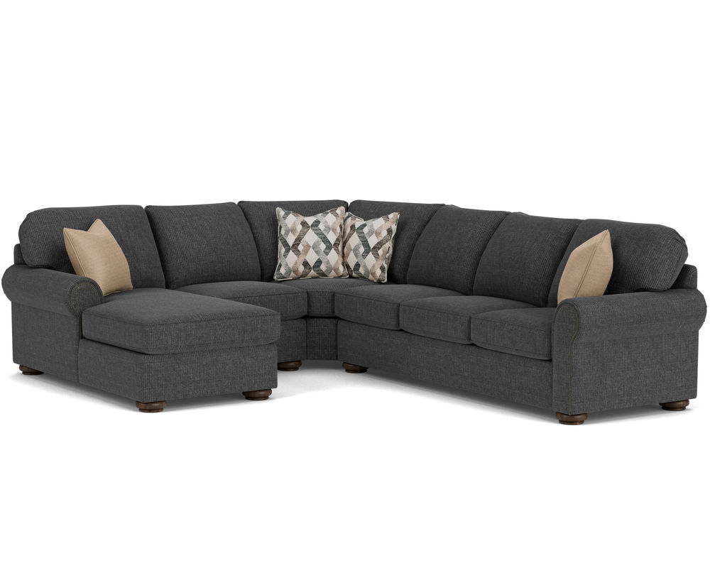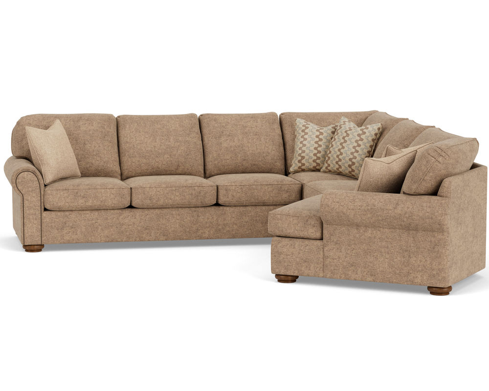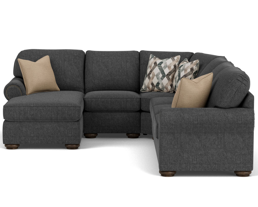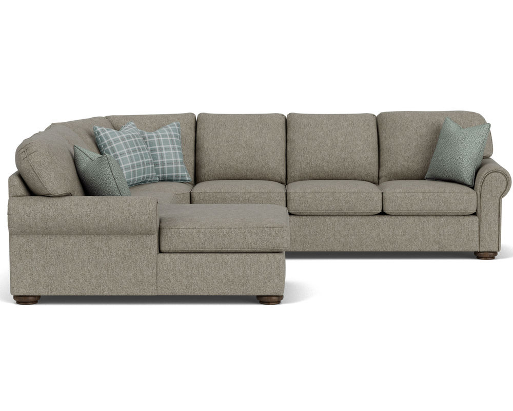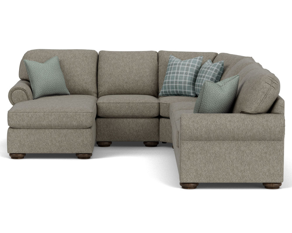 Smooth edges, oversized rolled arms, and exposed round bun feet give Preston classic appeal as a living-area staple. This sectional features welt cording trim on the back and seat cushions with nailhead trim for an elegant touch. Backed by lifetime guarantees, the style and comfort of Preston will be enjoyed for years to come.