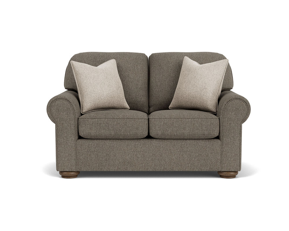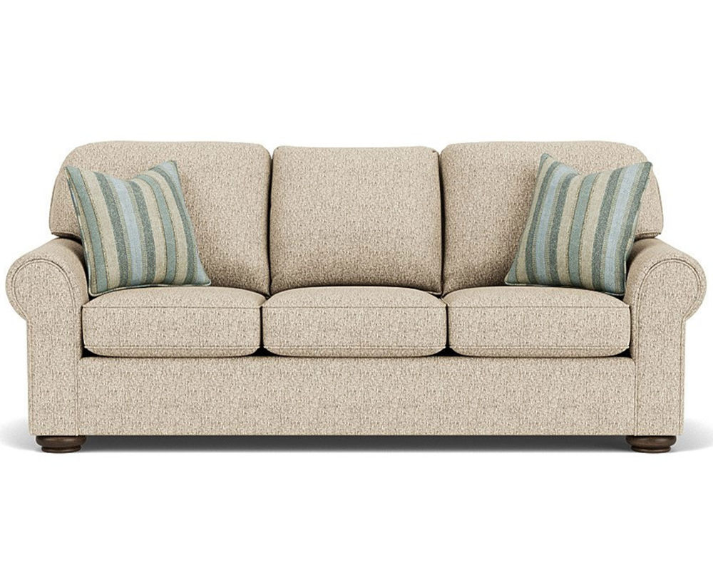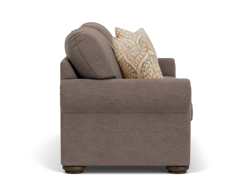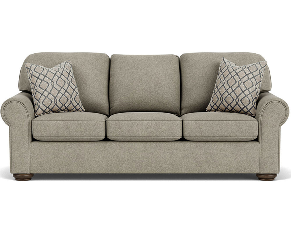 Smooth edges, oversized rolled arms, and exposed round bun feet give Preston classic appeal as a living-area staple. It features welt cording trims the back and seat cushion with optional nailhead trim for an elegant touch. Backed by lifetime guarantees, the style and comfort of Preston will be enjoyed for years to come.