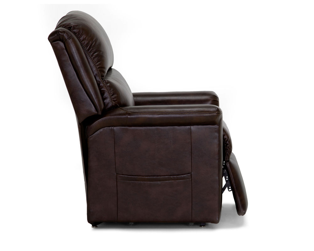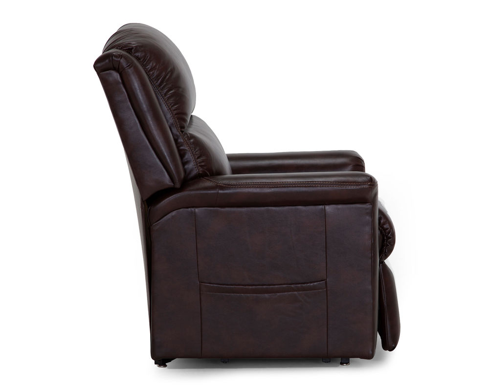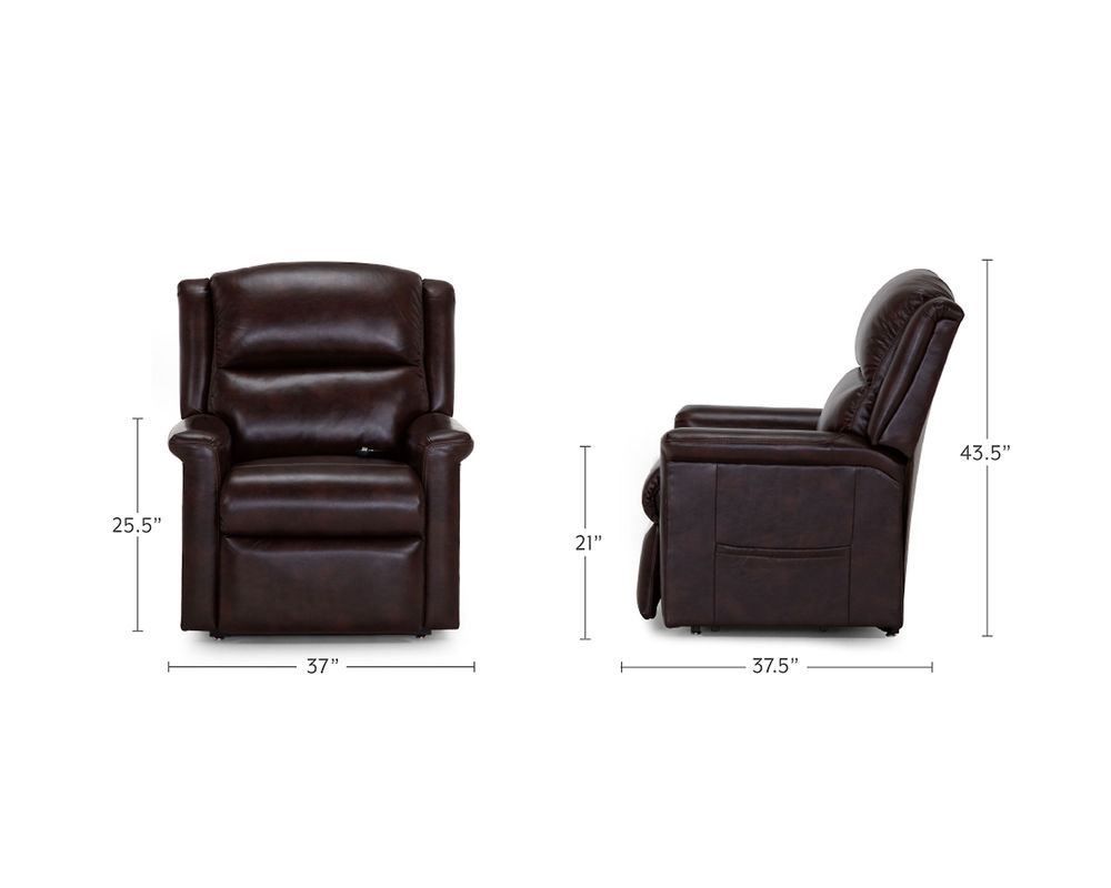 Get the stately look of a classic leather arm chair with all of the comfort and convenience of a recliner when you bring home the 486 Province Lift Recliner. The recliner is made using an ultra-soft, supple microfiber that is designed to look like sleek, regal brown leather and upholsters the entire chair over every visible inch. It is able to lean forward and backward, thanks to its three-way lift mechanism while also allowing you to comfortably recline back to your liking. Inside of the seat cushion is Franklin's exclusive Wow Seating Technology that incorporates a mix of both gel-injected foam and premium springs to deliver an excellent ride and plenty of support. Power lumbar support also gives your back the support it needs to keep you comfortable all day long. It measures a size of 37 inches in width by 38 inches in depth by 44.5 inches in height.