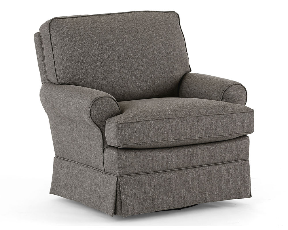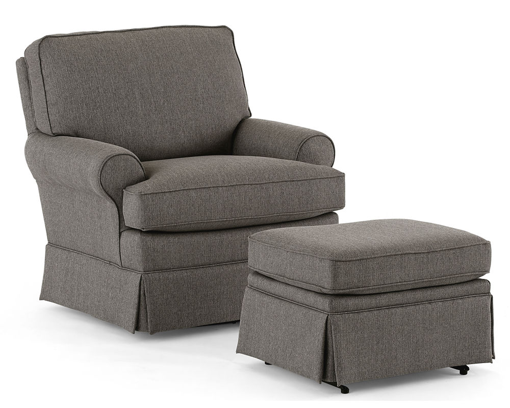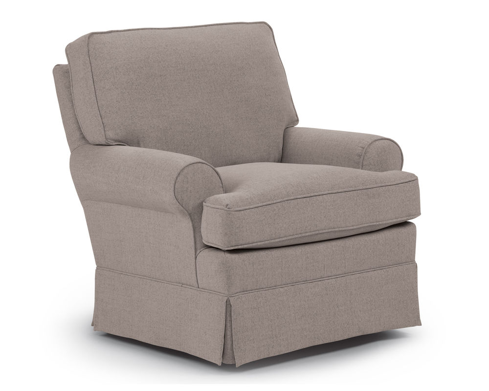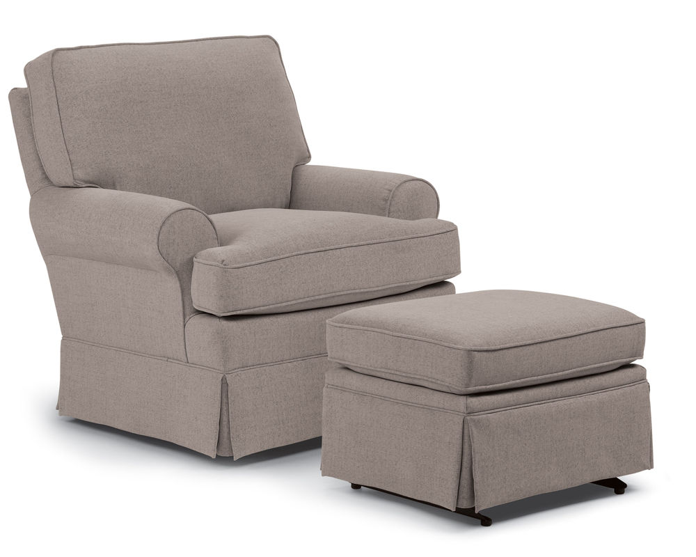 The Quinn 1570 Nursery Swivel Glider is the perfect piece of furniture to add to your nursery. It is designed to provide you with maximum comfort, with its overstuffed pillow back and its cozy air-lay fiber-wrapped seat cushion. This swivel glider also features large, rolled arms that are accented with cording, and a slightly taller skirt that gives it a traditional look. And to top it off, there is a matching glide ottoman included, so you can enjoy the smooth gliding motion from your seat to your feet. With its combination of comfort and style, the Quinn 1570 Nursery Swivel Glider is the perfect addition to your nursery.