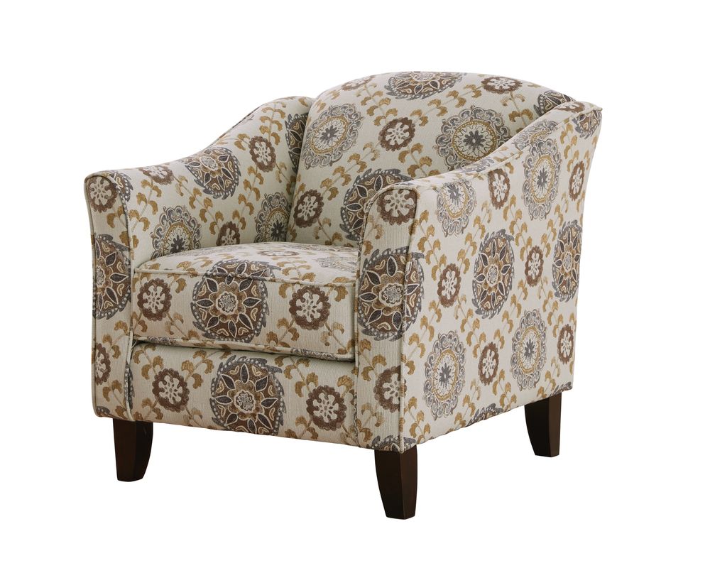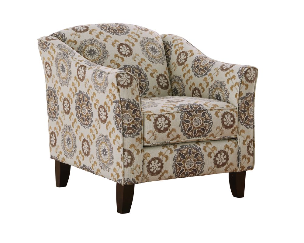 Introducing the Quintero Mineral Accent Chair—452, a stylish and functional addition to any living space. This elegant chair features flared coffee-finish legs that add a touch of sophistication to its design. The tight back, flared arms, and loose box-border cushion provide both comfort and support, making it the perfect spot to relax and unwind.