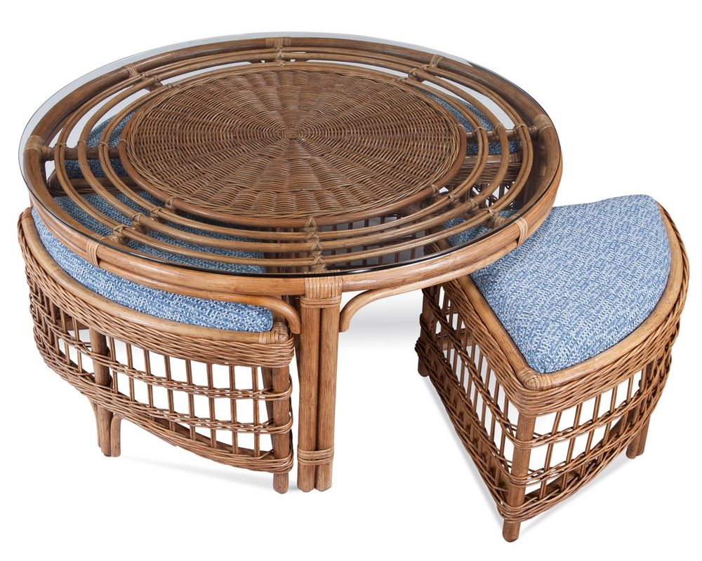 Raffles 48" Round Rattan Cocktail Table with Benches Smart Coastal Design with Built-In Seating