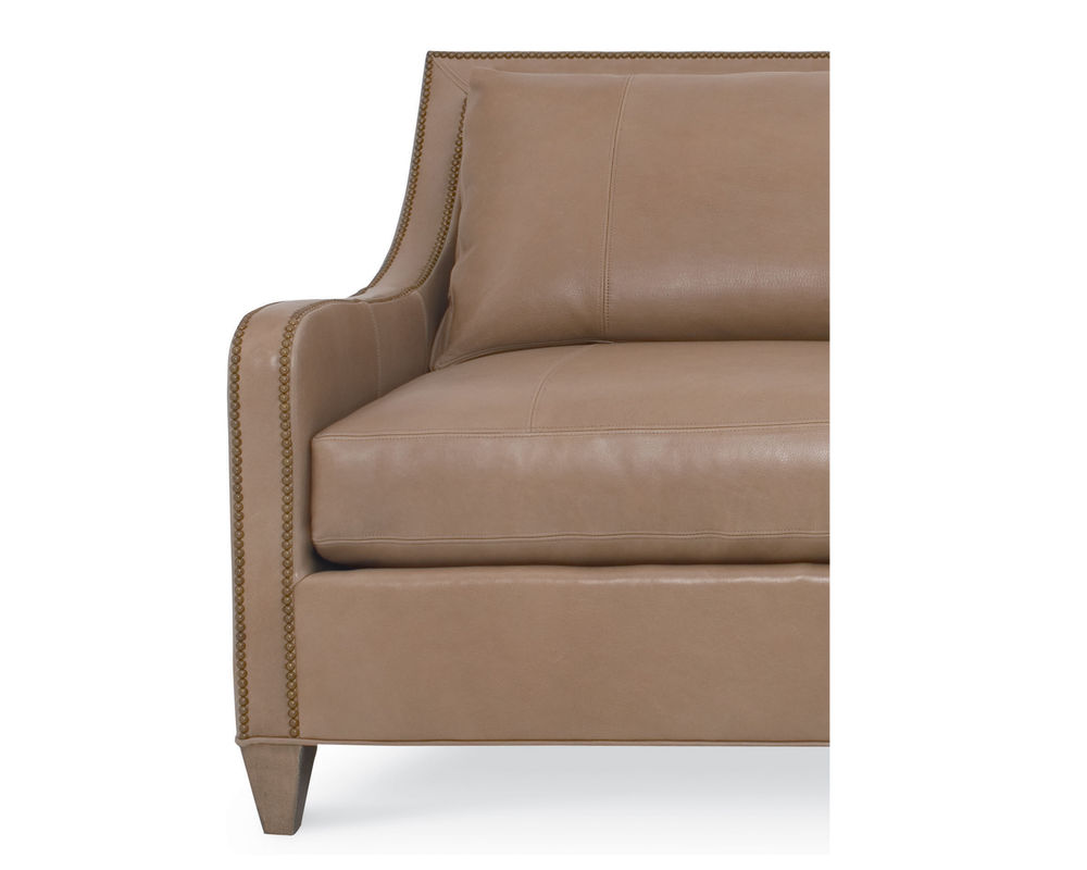Standard saddle-stitched as shown. Standard with small nails applied as shown (brass standard: optional pewter shown). Due to the construction of this style, nails cannot be removed from the arms and in-back.