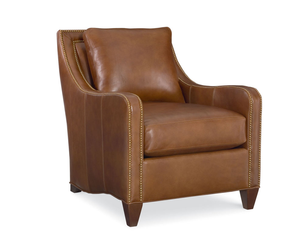 Standard saddle-stitched as shown. Standard with small brass nail trim applied as shown. Due to the construction of this style, nails cannot be removed from the arms and in-back.