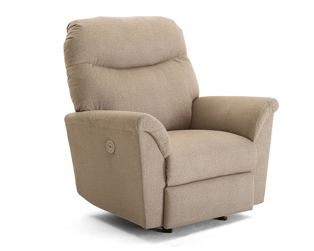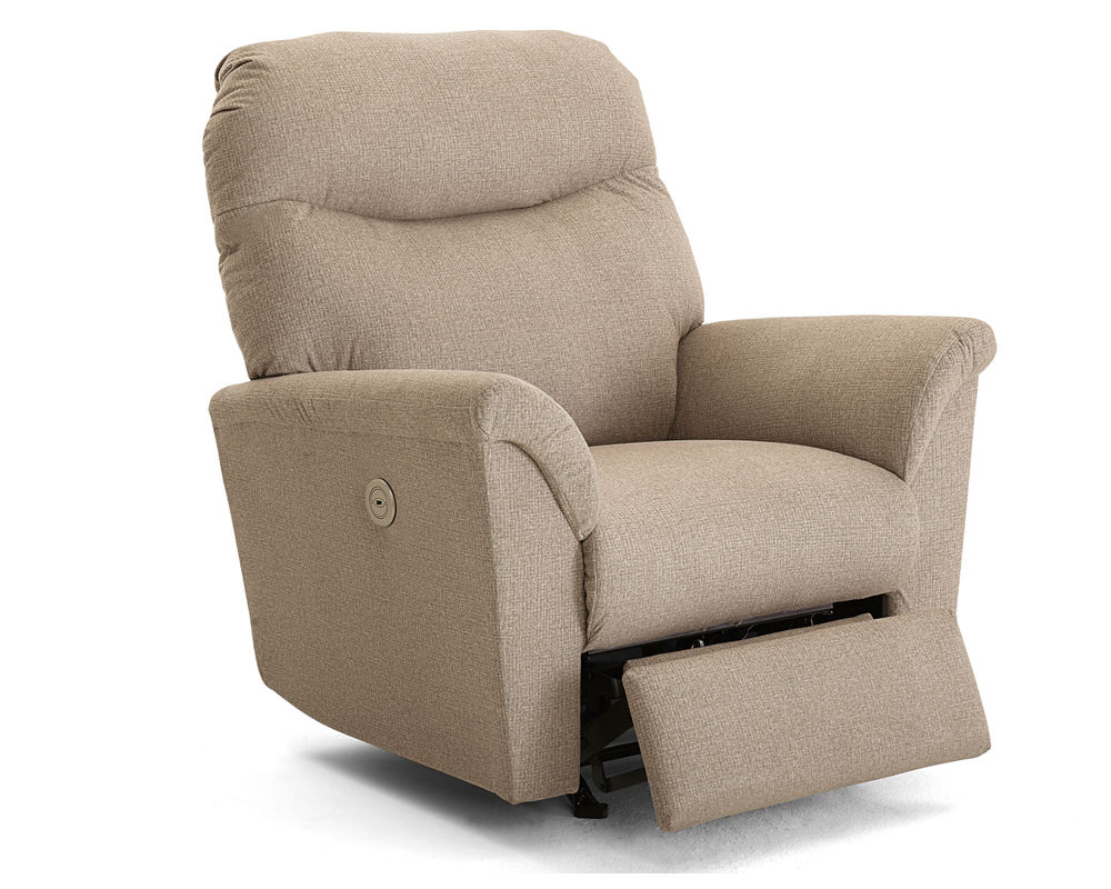 The Caitlin 4N24 Recliner is the perfect addition to your home. With its clean design lines and irresistible curves, this recliner is sure to make a statement. With the latest innovations in exclusive reclining mechanisms, this recliner offers stylish comfort and support. The Space Saver® feature allows you to place this recliner virtually next to the wall and still have a full layout. You can choose between power and manual recline, and also opt for the Power Tilt Headrest for custom support of your head. With almost 100 fabric options and select top-grain leathers to choose from, you are sure to find the perfect look to match your home decor. Make life easier with the built-in USB charger for your convenience. The Caitlin Power Recliner is the perfect combination of style and comfort.