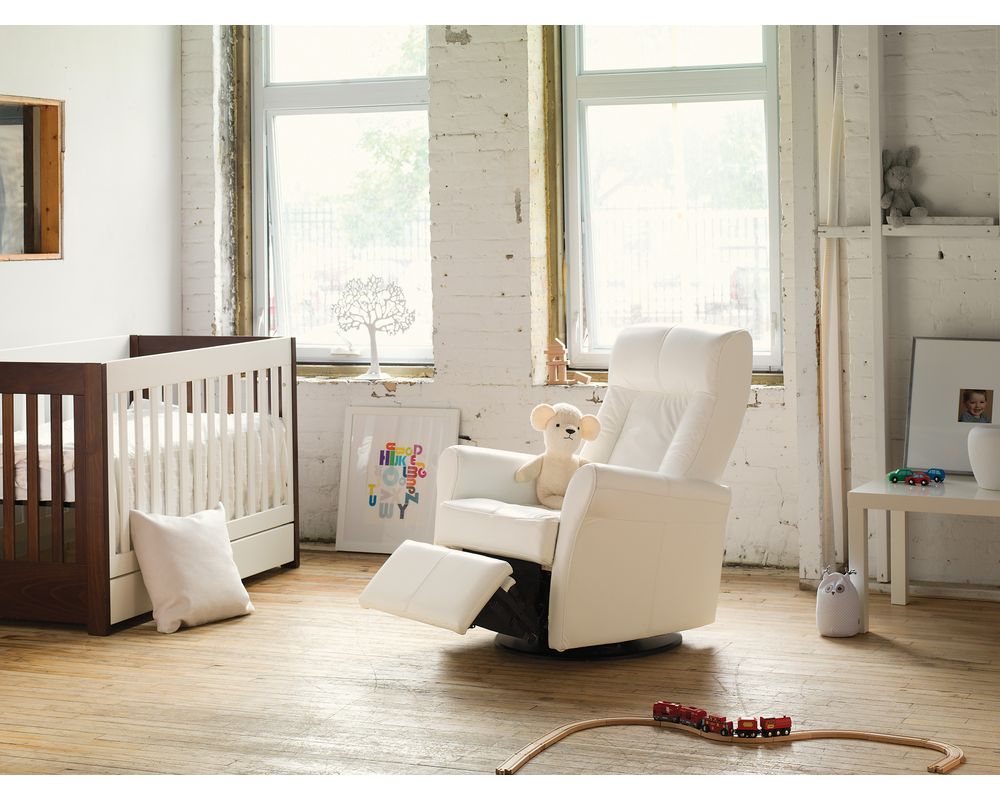 Along the sides and fronts of the armrests, decorative seams enhance the look of the recliner, and the footrest has channel stitching to match the headrest. Made in an array of fabric and leather looks, this recliner is offered in wall hugger, rocker and swivel rocker styles.