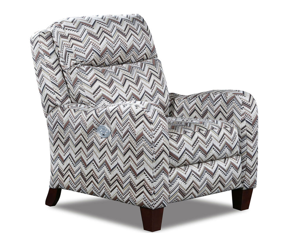 The Prestige Recliner is the perfect combination of comfort and style! With a transitional frame and undulating track arm, it is sure to please the most style-conscious person in the house. Its plush, luxuriously soft back cushions invite you to relax and unwind. The chair is finished with tapered block feet in a tobacco finish, for a classic look that adds to its prestige. Choose from a push-through-the-arm reclining chair, or a power recline option for ultimate relaxation. The Prestige Recliner is the perfect way to relax in style and comfort!