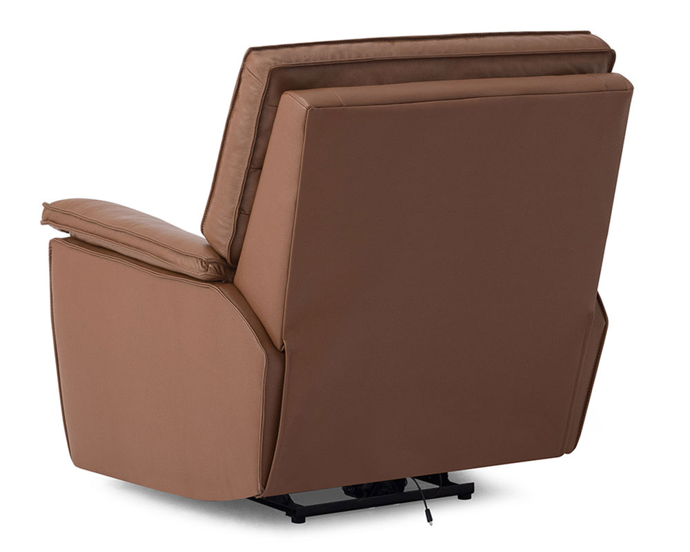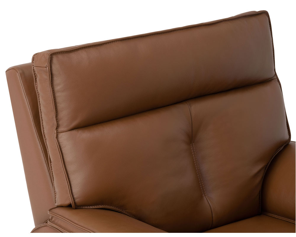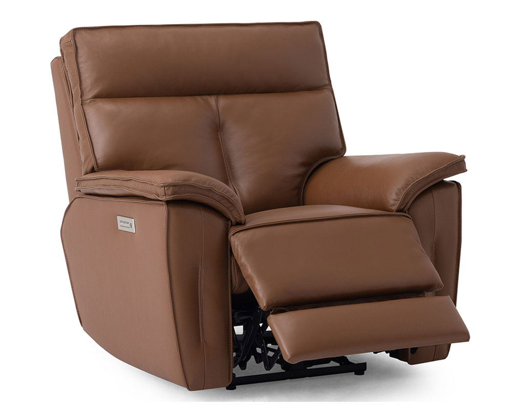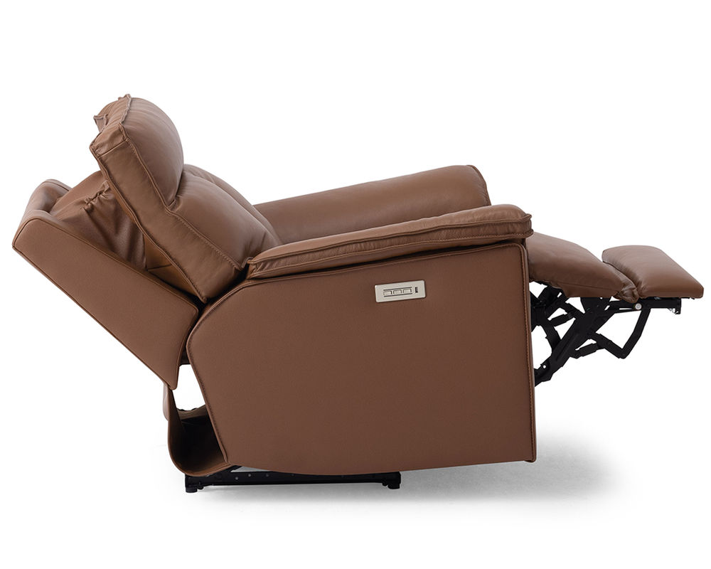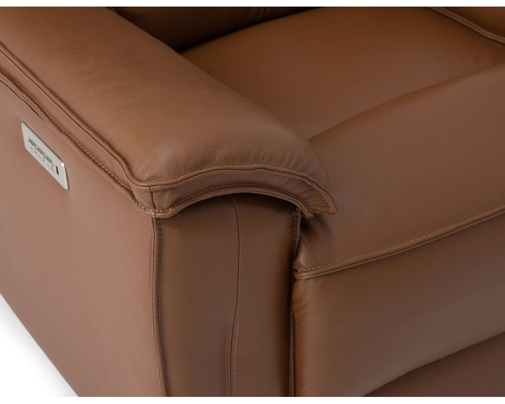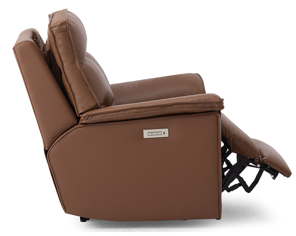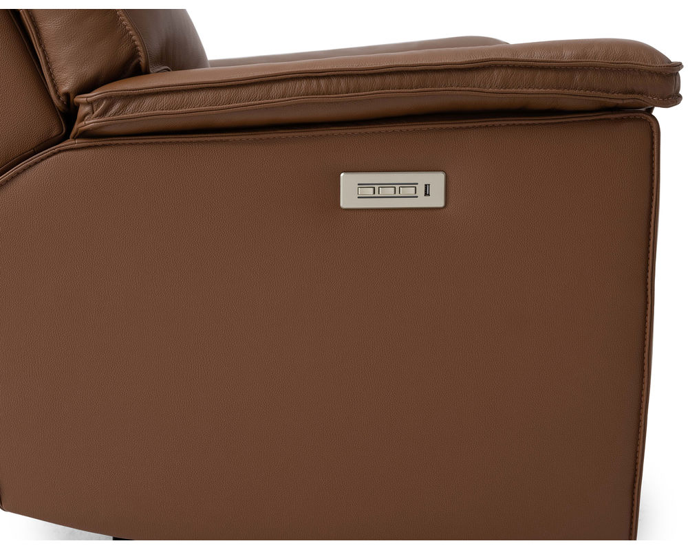 • Power recline and power headrests operated by a brushed metal power switch with integrated USB charging