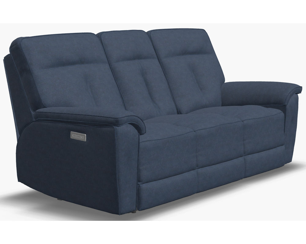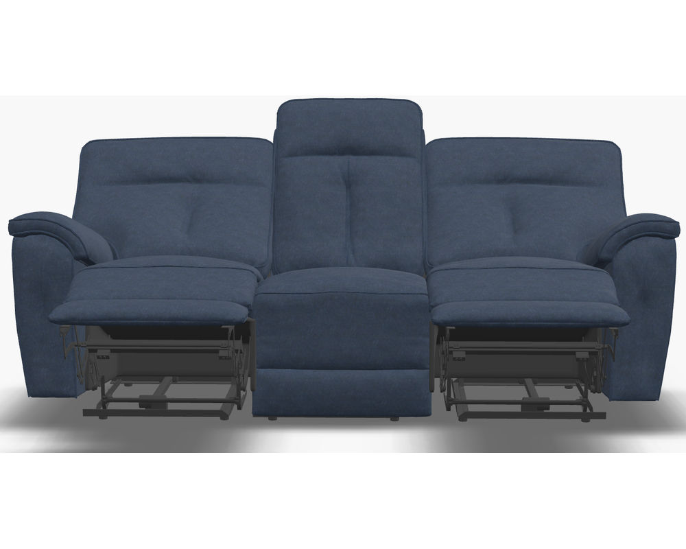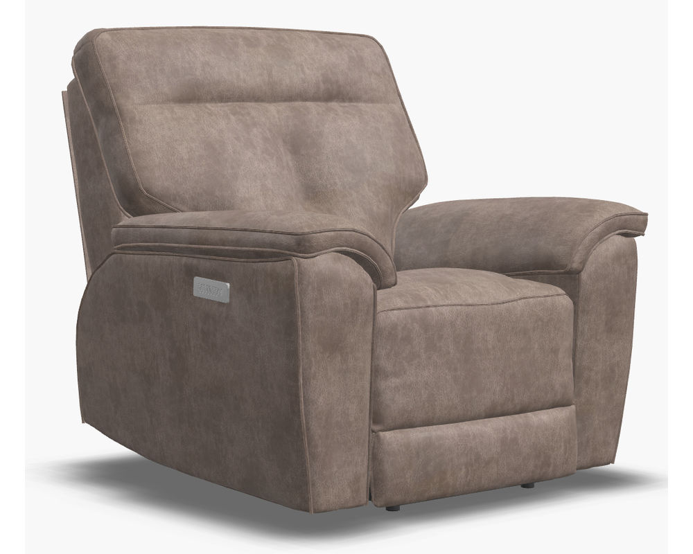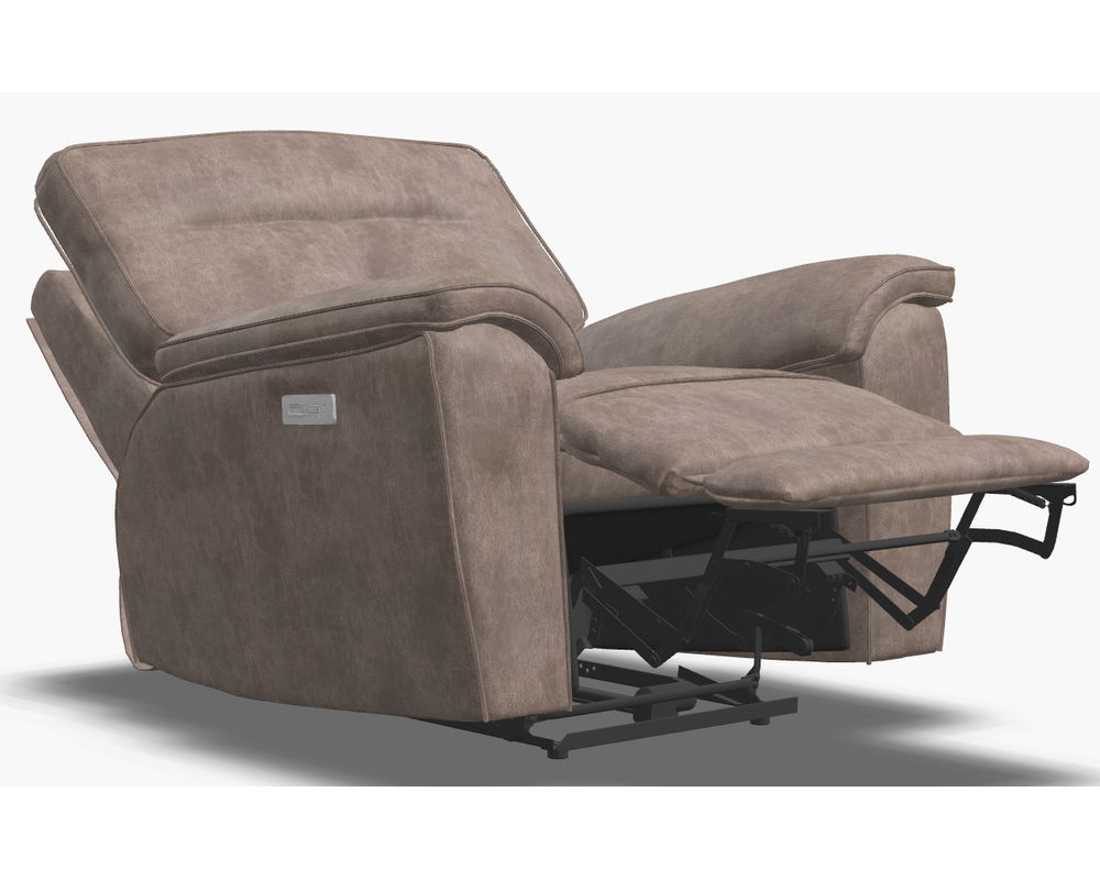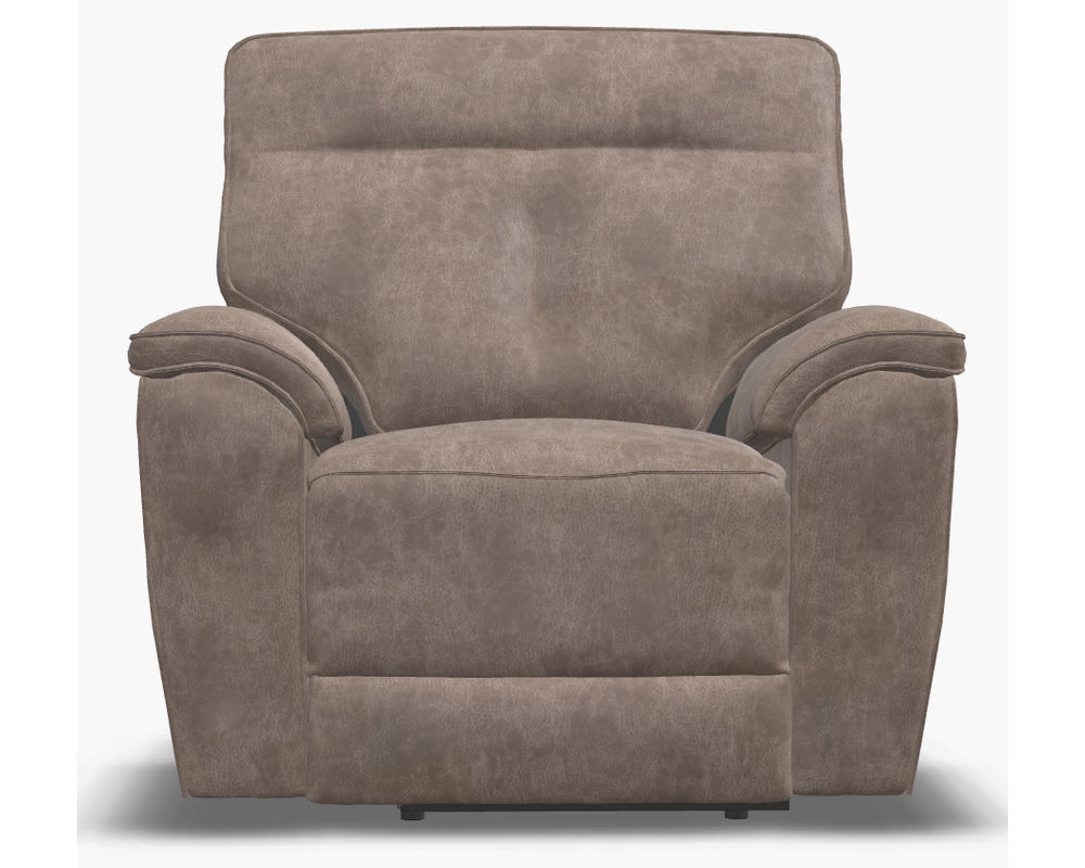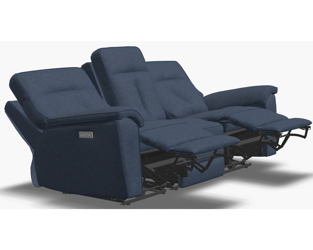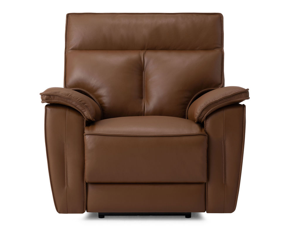 • Power recline and power headrests operated by a brushed metal power switch with integrated USB charging