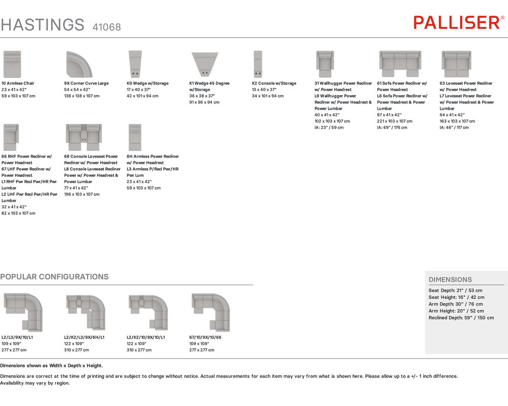 • All Palliser cushions are crafted to rigorous quality standards for superior comfort, support and endurance. High-density, high-resiliency seat foam is used to ensure years of quality seating.