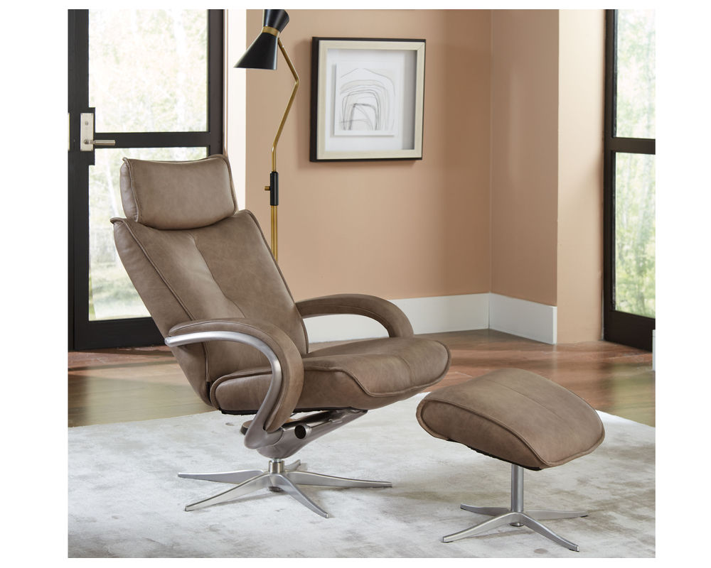 This stylish, European-inspired Quantim Q13 Chair and Ottoman (Petite and Standard Size Available) was designed for ergonomics to cradle your body and complement contemporary décor. The smaller scale form features elegant topstitching detail and a flared track arm emanates sophistication and poise. The integrated head support pillow, combined with the reclining mechanism offers a comfortable place to spend your time whether watching TV or reading your favorite novel.