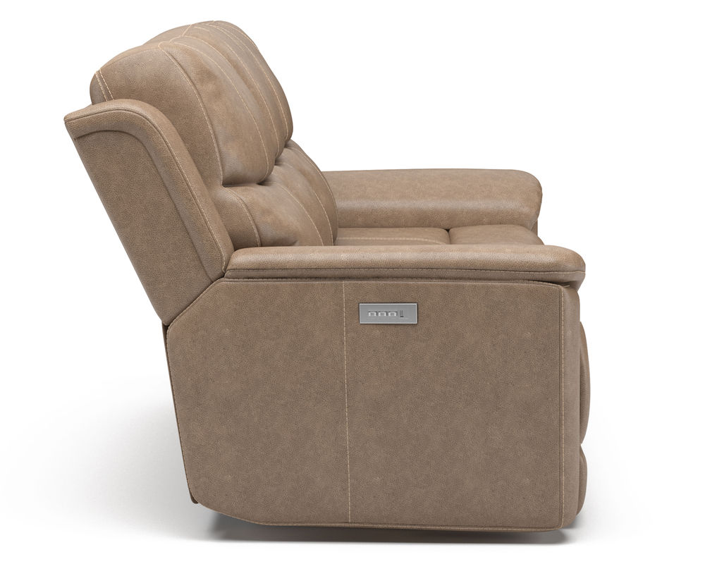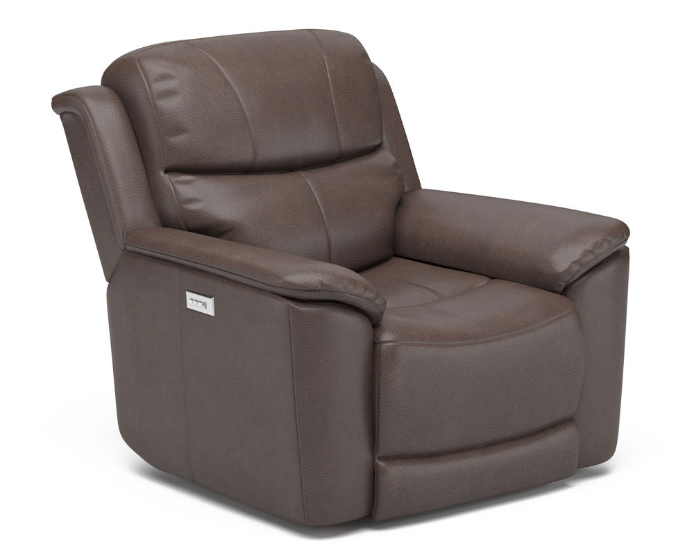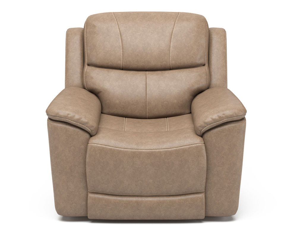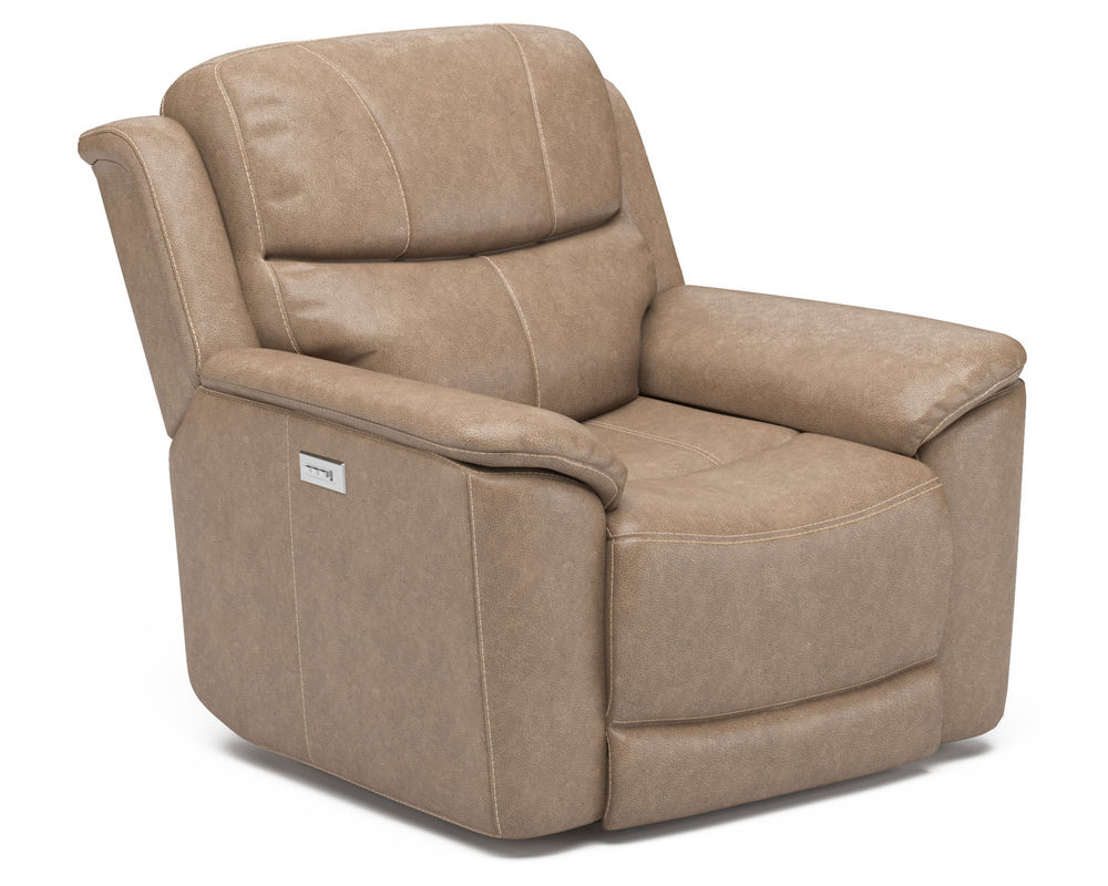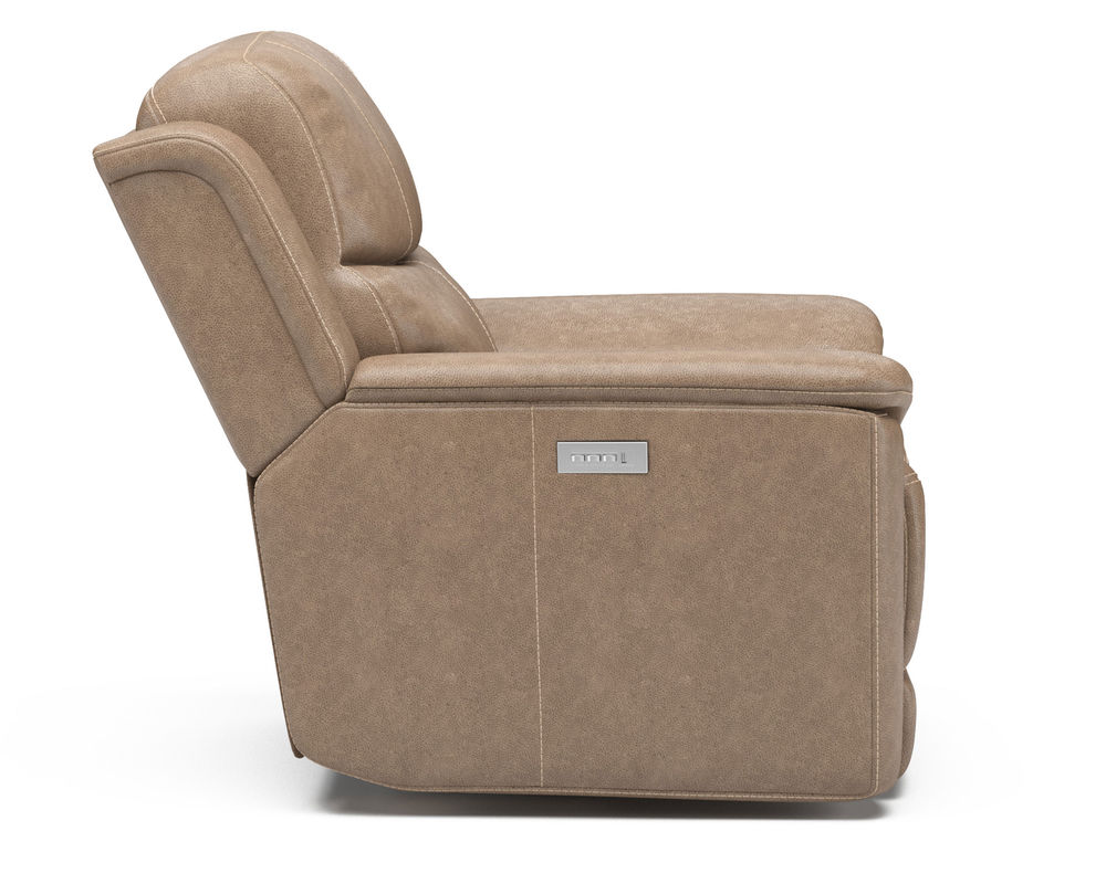 Cade delivers extreme comfort with a fully padded, extended footrest and divided back cushions. Its frame spotlights unique armrests that pop out of a wrap-over detail and accentuated on the side with matching, heavy-thread stitching. Wrap-around pads on the back wings mimic the arm design and add flow and continuity to Cade's style. A power reclining mechanism lets you change angles effortlessly from an upright to a fully reclined position, and a power button control allows you to independently adjust the headrest for custom relaxation.