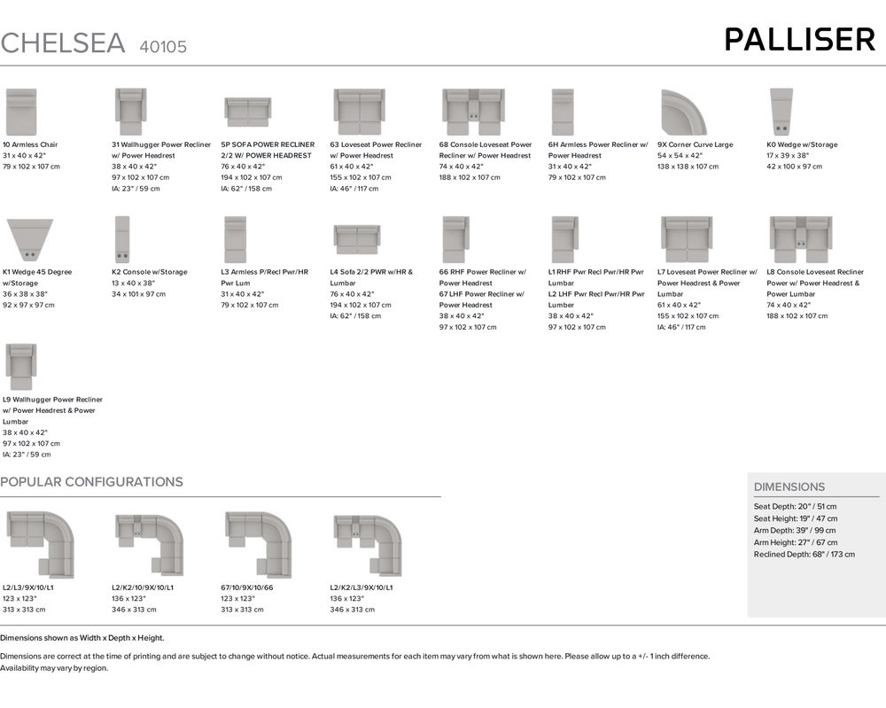 Introducing the Chelsea 40105 Wallhugger Recliner - the ultimate combination of style and functionality! This modern piece of furniture is designed to provide you with a luxurious and comfortable seating experience while also being space-saving.