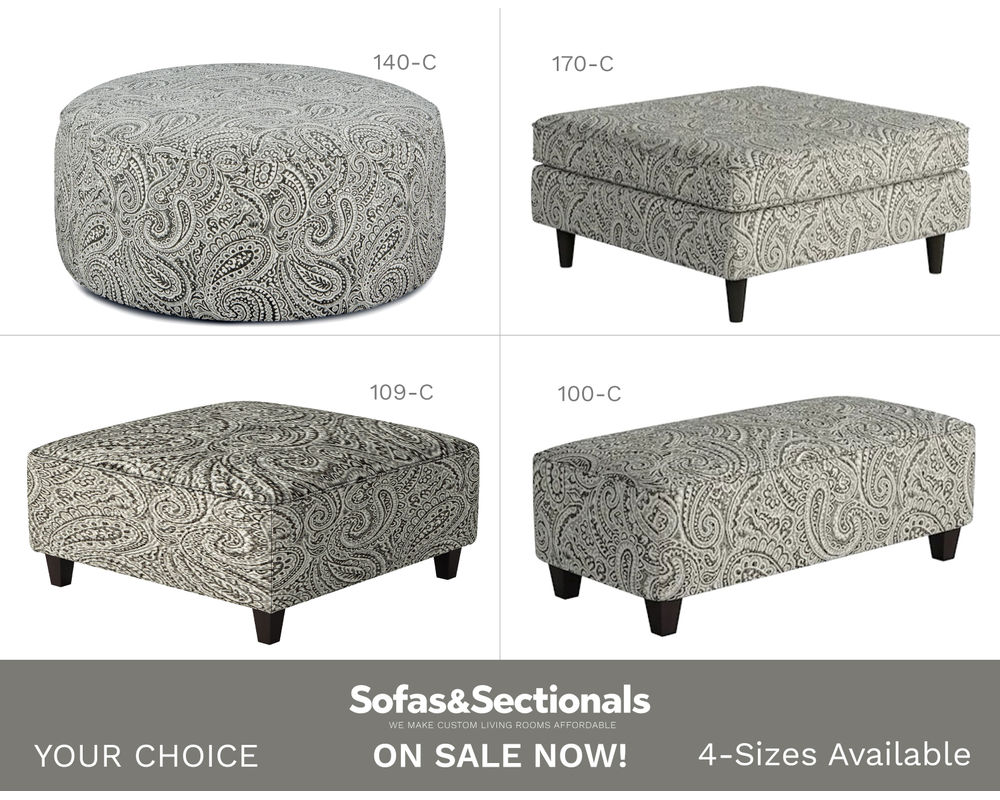 For a unique touch, the 39" oval (round) cocktail ottoman (140C) is the perfect choice. Its sleek and modern shape, a departure from the traditional square design, will add a touch of elegance and intrigue to any room.
